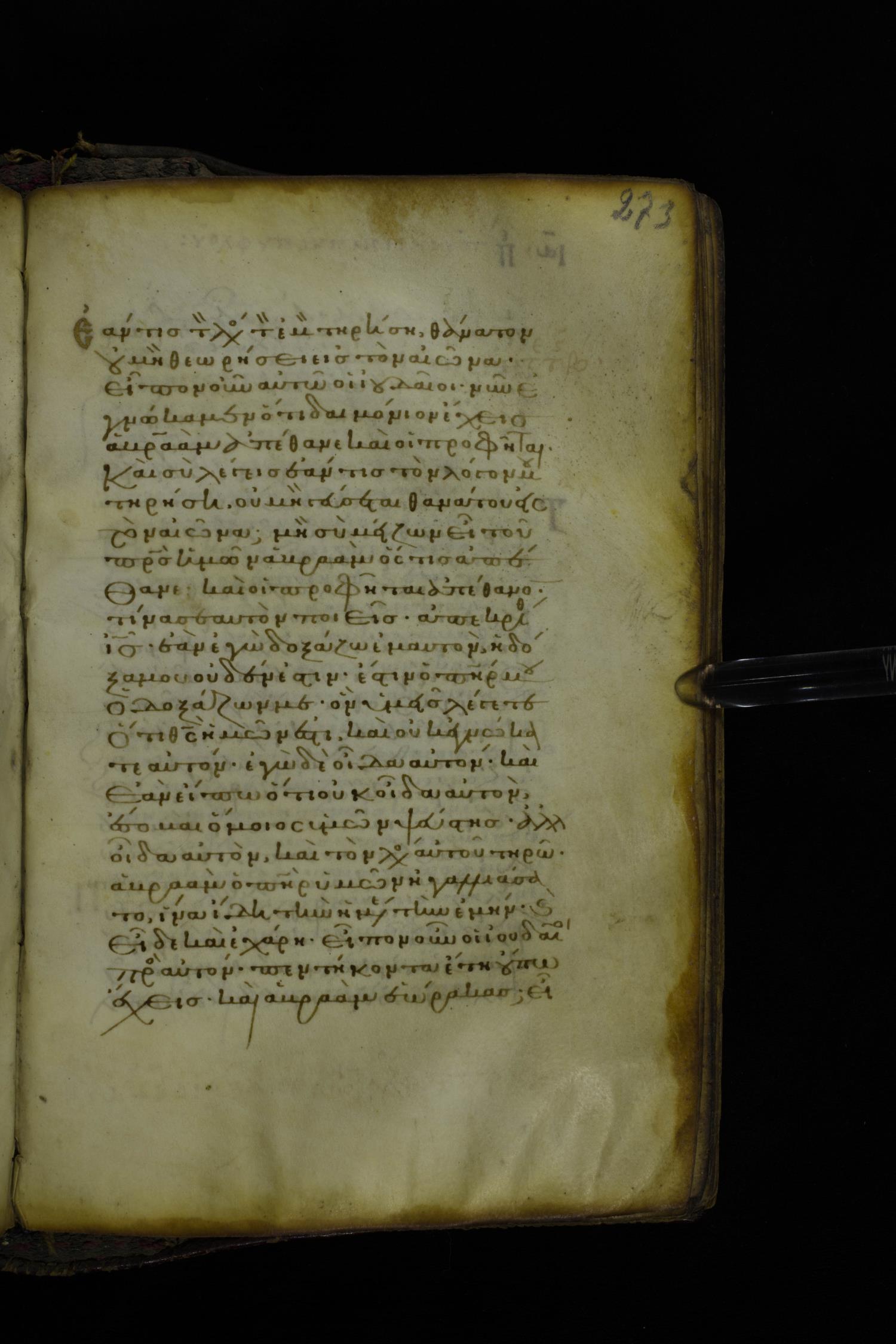 Twelfth century minuscule of the Gospel on parchment; 305 leaves, 1 column, 24 lines per column. Images were taken at the National Library of Greece in Athens.
