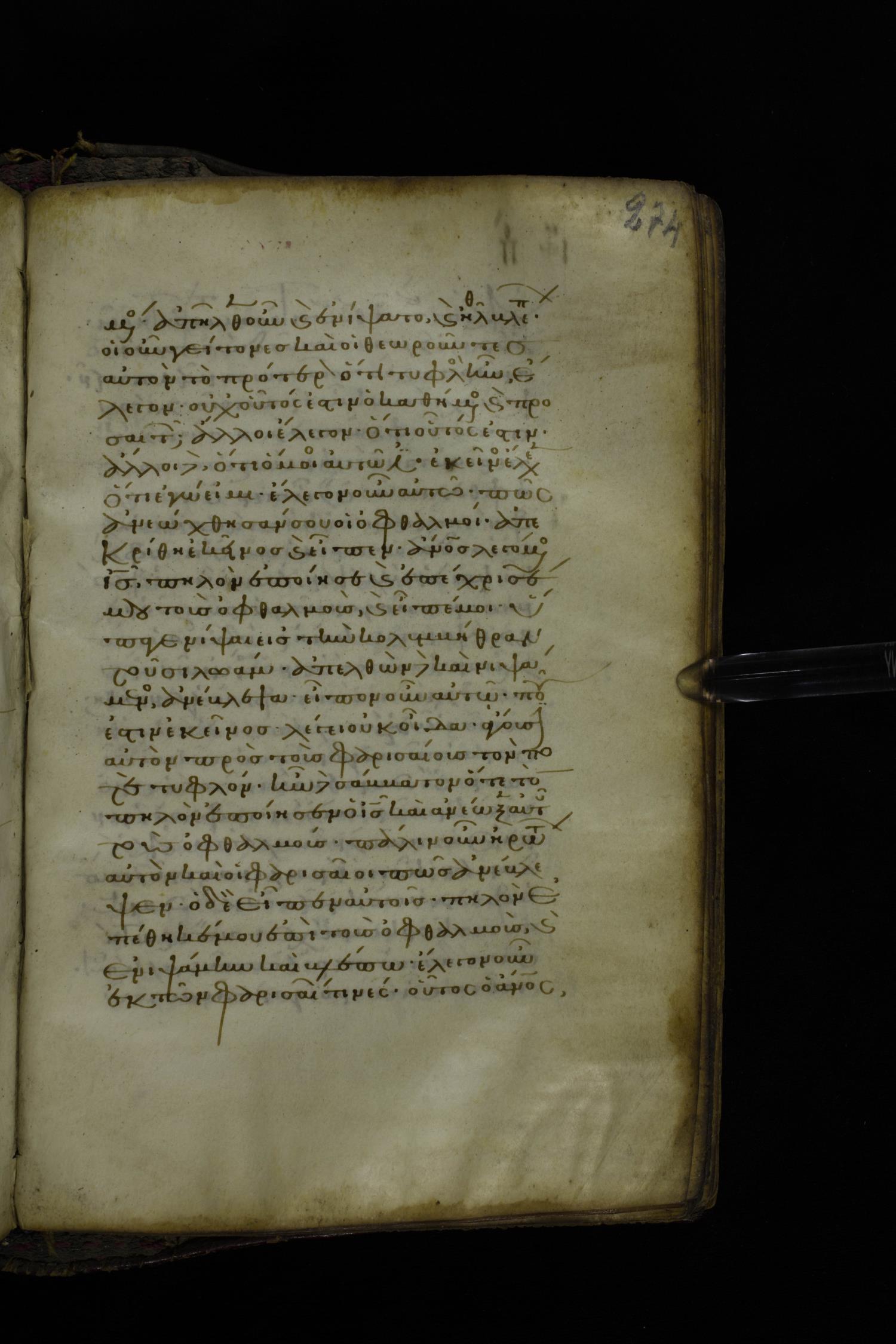 Twelfth century minuscule of the Gospel on parchment; 305 leaves, 1 column, 24 lines per column. Images were taken at the National Library of Greece in Athens.