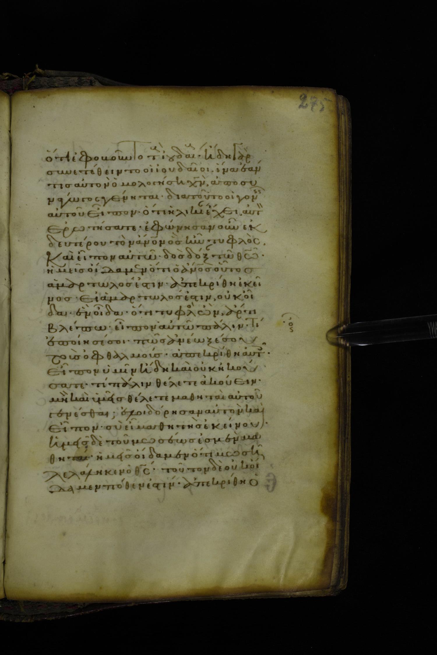 Twelfth century minuscule of the Gospel on parchment; 305 leaves, 1 column, 24 lines per column. Images were taken at the National Library of Greece in Athens.