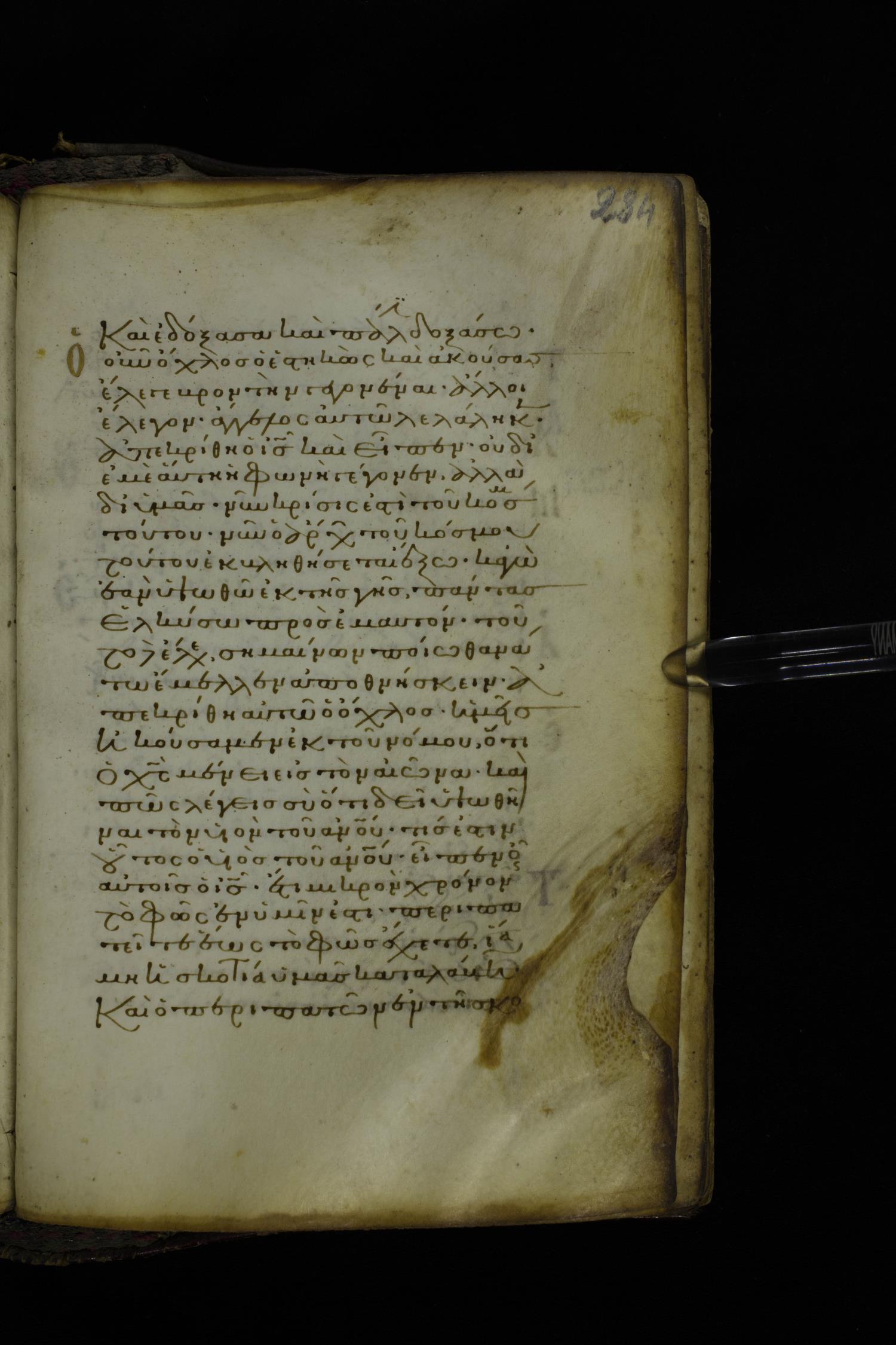 Twelfth century minuscule of the Gospel on parchment; 305 leaves, 1 column, 24 lines per column. Images were taken at the National Library of Greece in Athens.