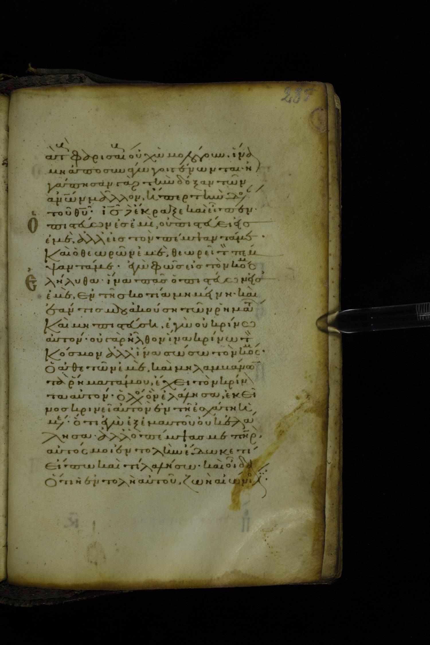 Twelfth century minuscule of the Gospel on parchment; 305 leaves, 1 column, 24 lines per column. Images were taken at the National Library of Greece in Athens.