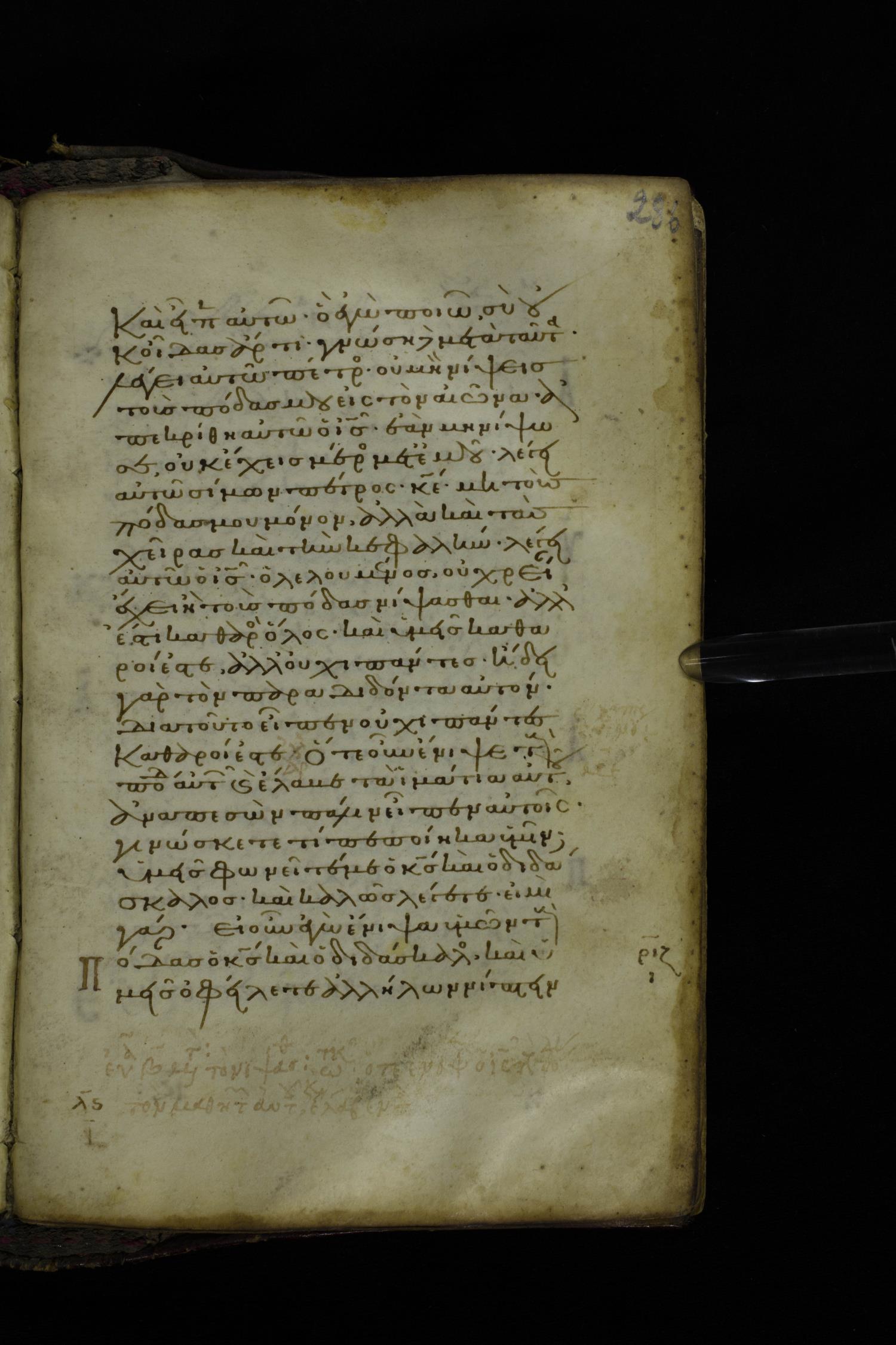 Twelfth century minuscule of the Gospel on parchment; 305 leaves, 1 column, 24 lines per column. Images were taken at the National Library of Greece in Athens.