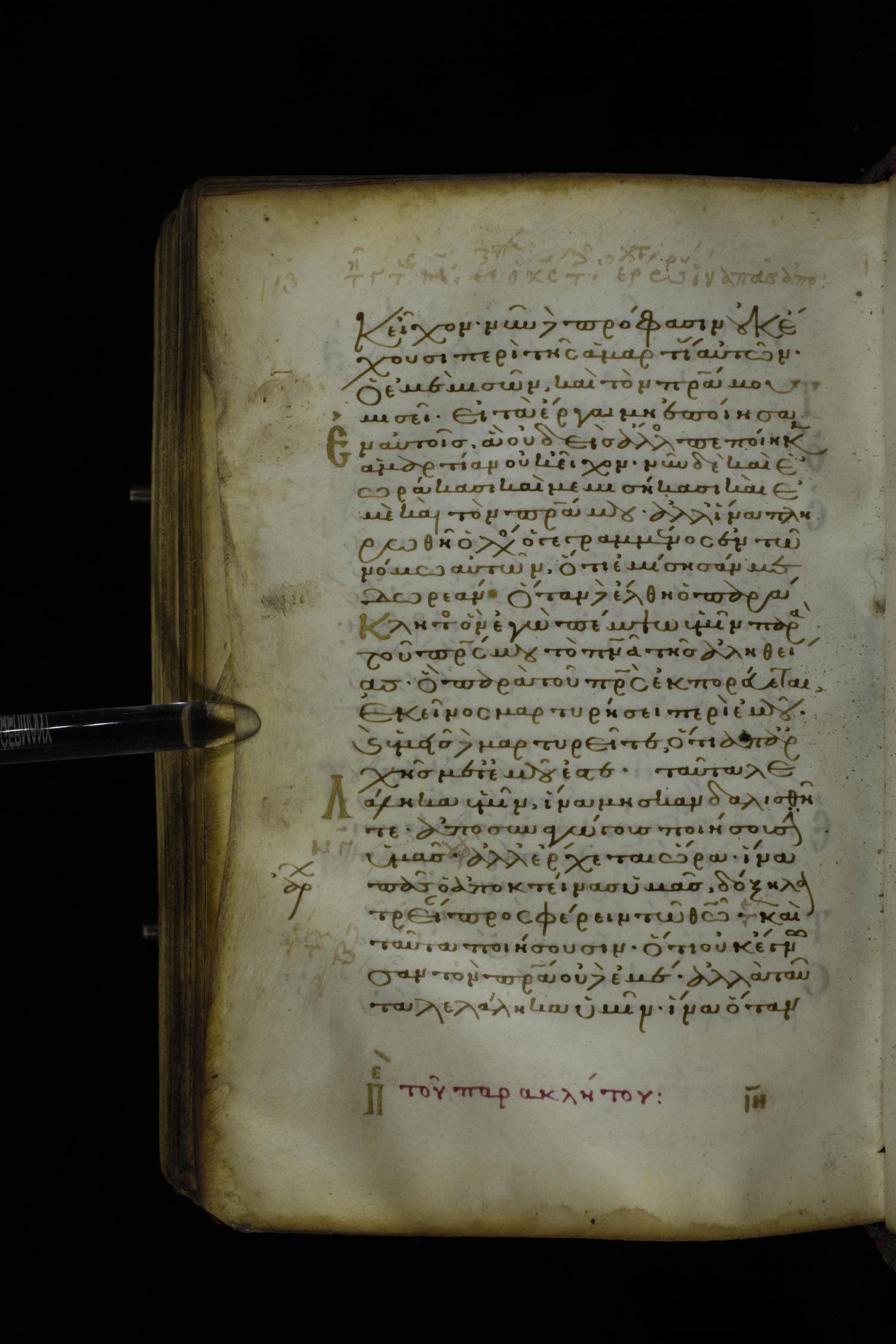 Twelfth century minuscule of the Gospel on parchment; 305 leaves, 1 column, 24 lines per column. Images were taken at the National Library of Greece in Athens.