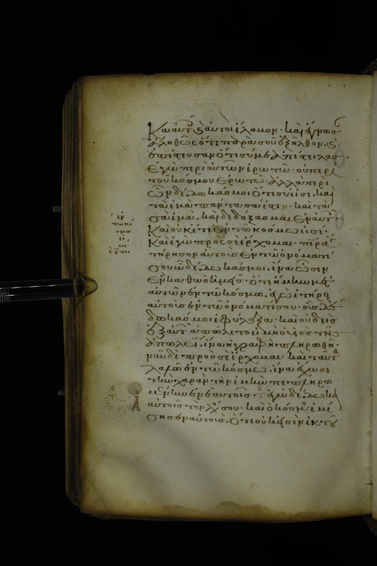 Twelfth century minuscule of the Gospel on parchment; 305 leaves, 1 column, 24 lines per column. Images were taken at the National Library of Greece in Athens.