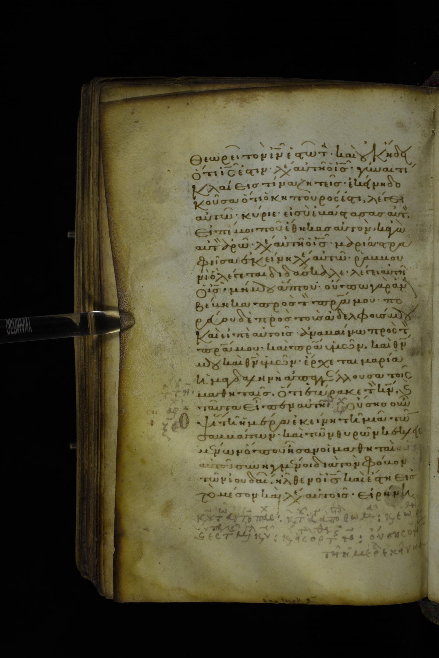 Twelfth century minuscule of the Gospel on parchment; 305 leaves, 1 column, 24 lines per column. Images were taken at the National Library of Greece in Athens.