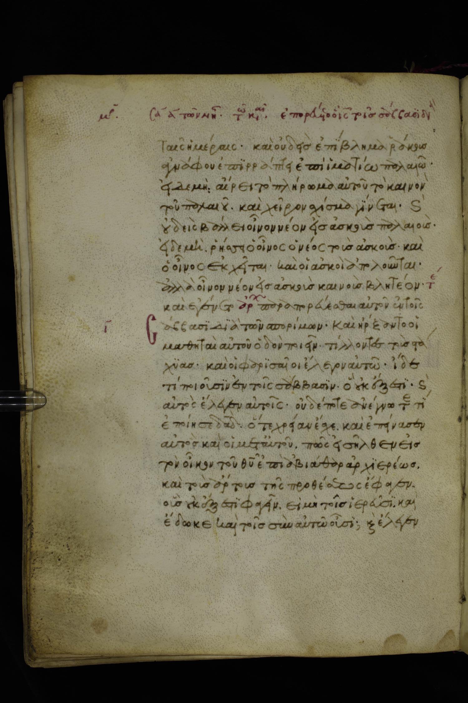 Fourteenth century minuscule of the Gospels on parchment; 250 leaves, 1 column, 20-21 lines per column. Images were taken at the National Library of Greece in Athens.