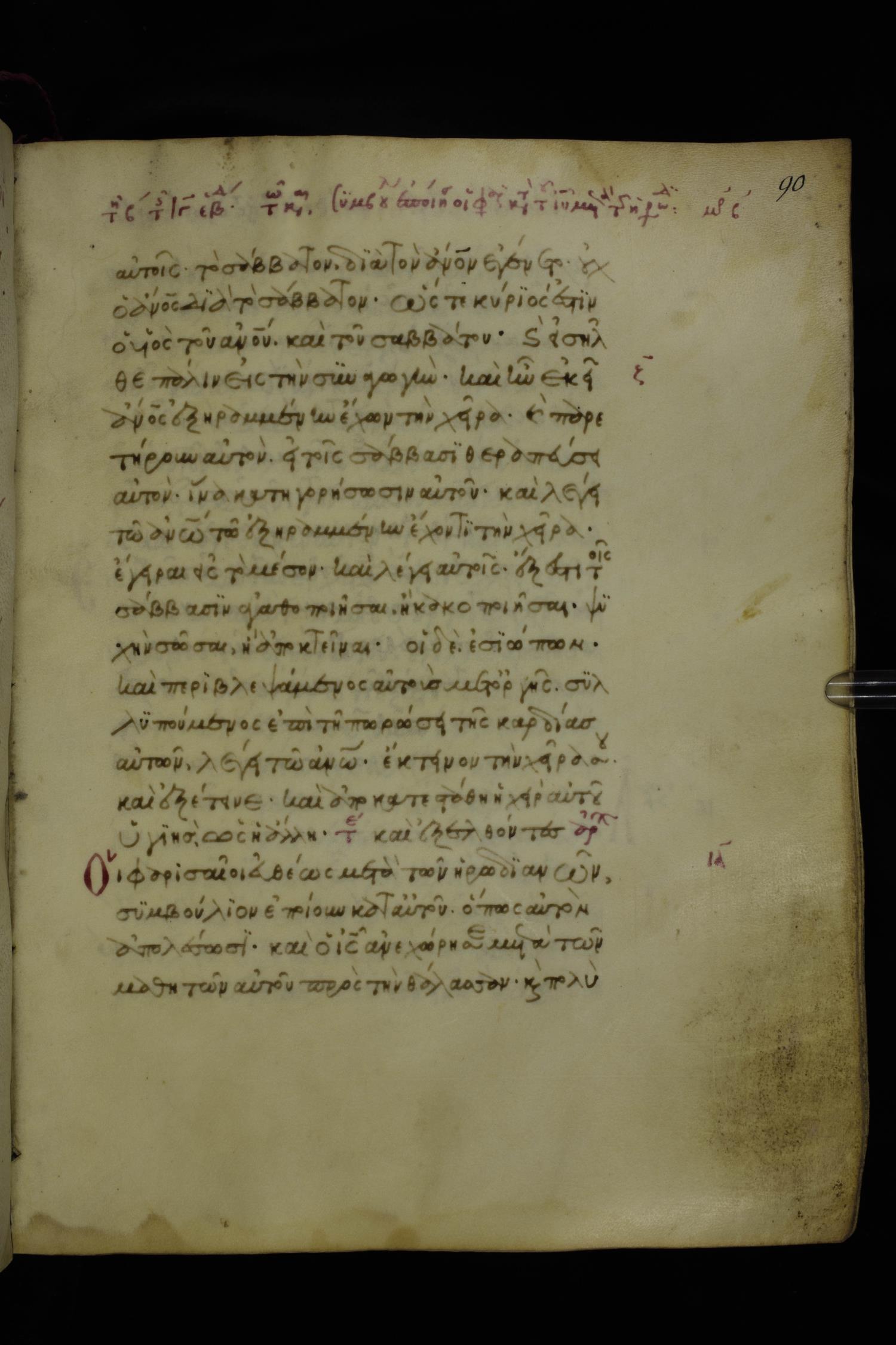 Fourteenth century minuscule of the Gospels on parchment; 250 leaves, 1 column, 20-21 lines per column. Images were taken at the National Library of Greece in Athens.