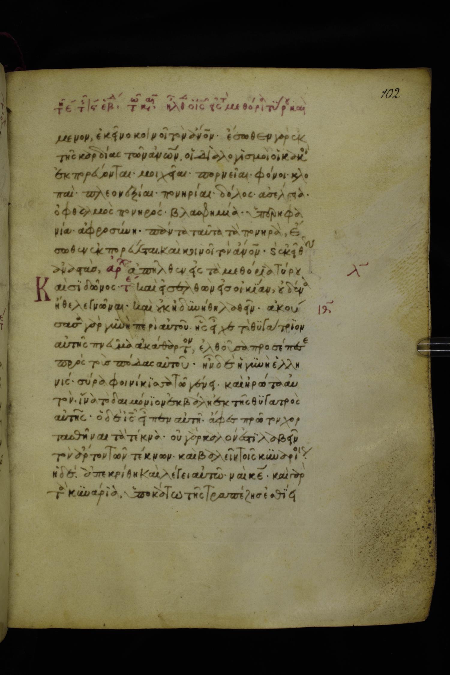 Fourteenth century minuscule of the Gospels on parchment; 250 leaves, 1 column, 20-21 lines per column. Images were taken at the National Library of Greece in Athens.