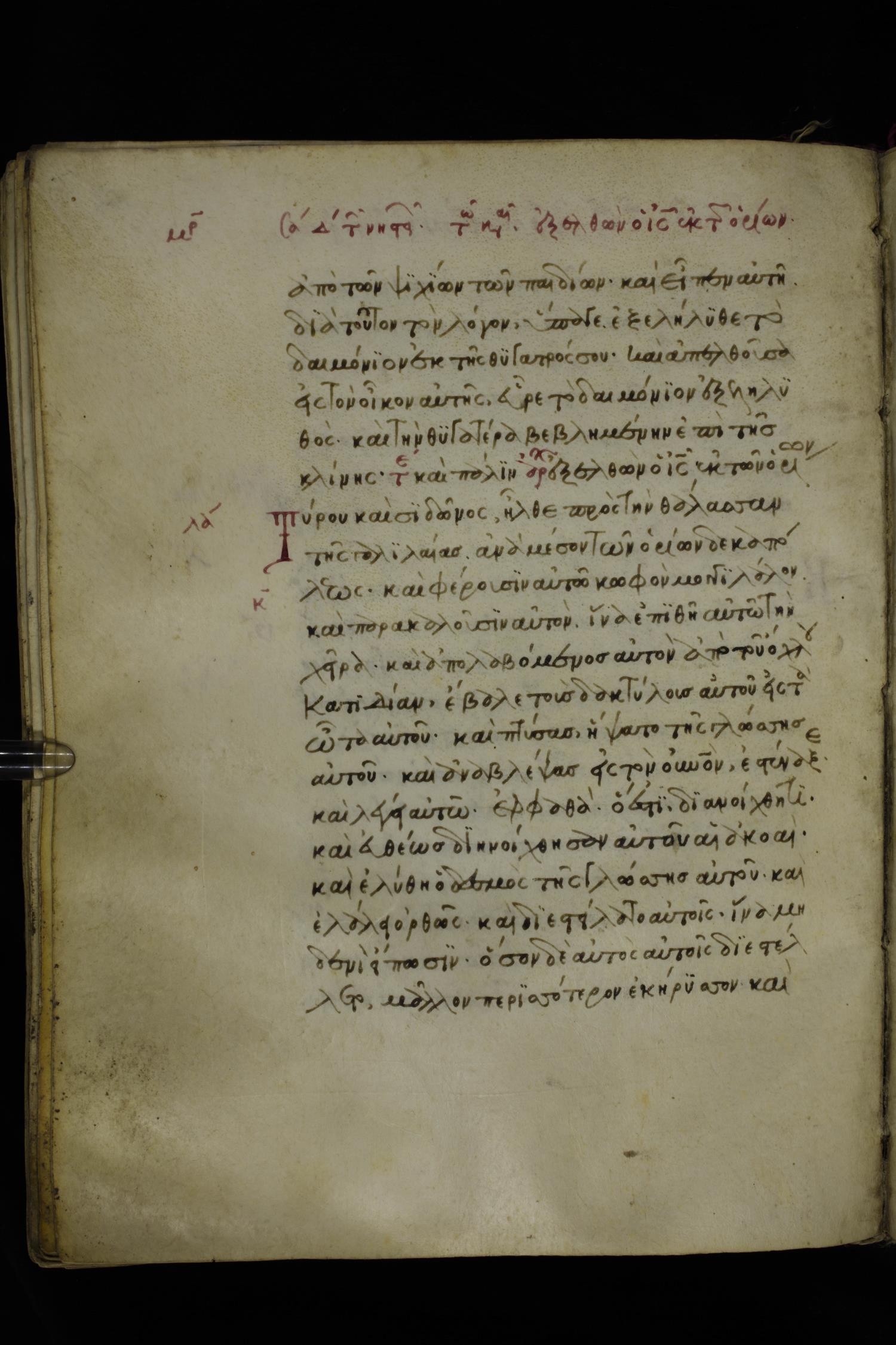 Fourteenth century minuscule of the Gospels on parchment; 250 leaves, 1 column, 20-21 lines per column. Images were taken at the National Library of Greece in Athens.