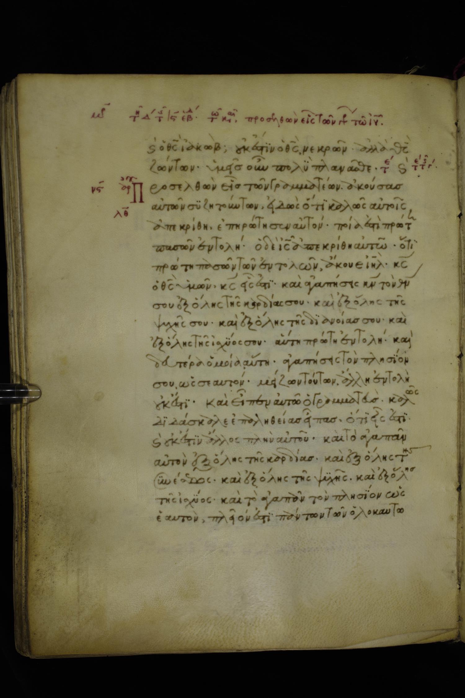 Fourteenth century minuscule of the Gospels on parchment; 250 leaves, 1 column, 20-21 lines per column. Images were taken at the National Library of Greece in Athens.