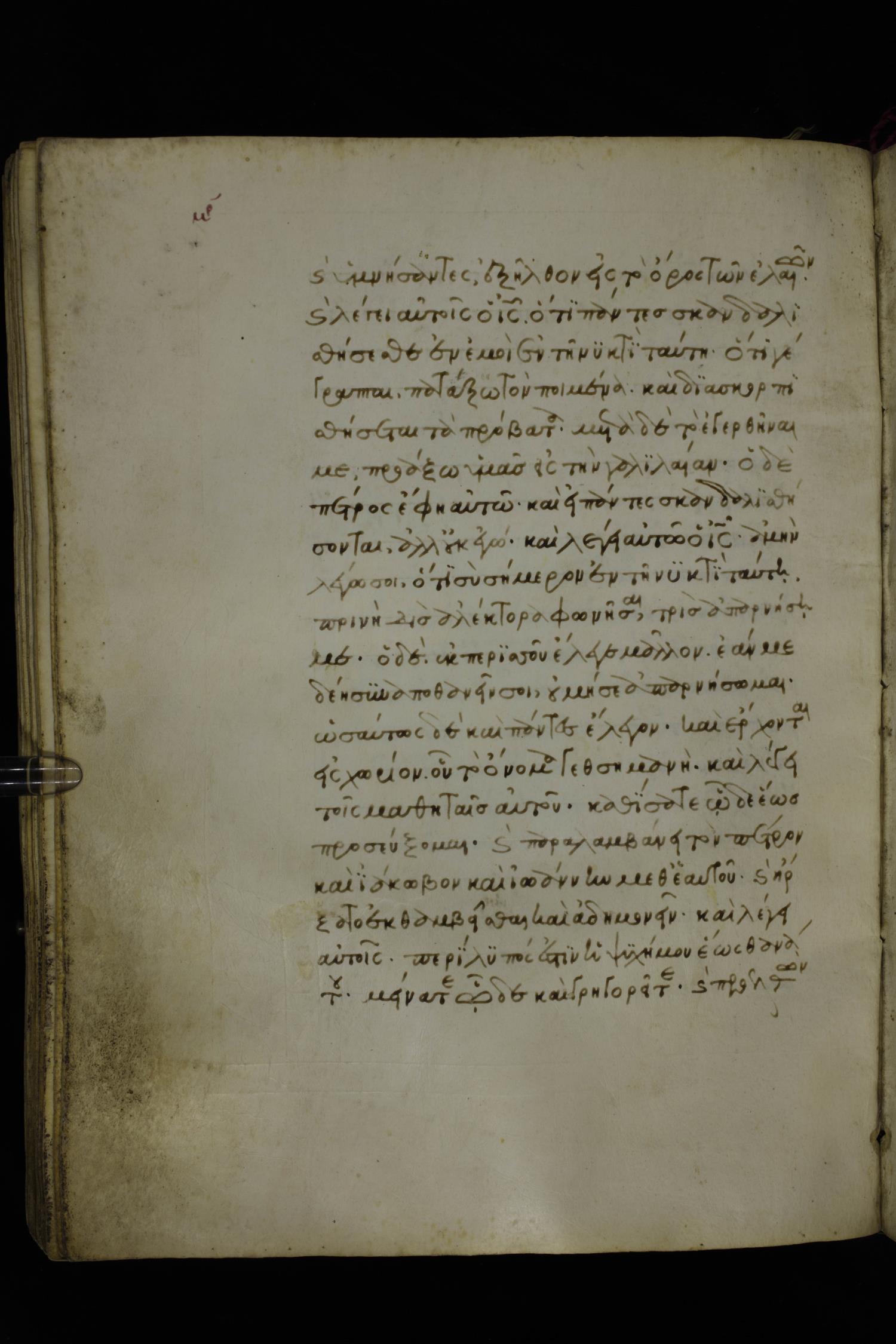 Fourteenth century minuscule of the Gospels on parchment; 250 leaves, 1 column, 20-21 lines per column. Images were taken at the National Library of Greece in Athens.