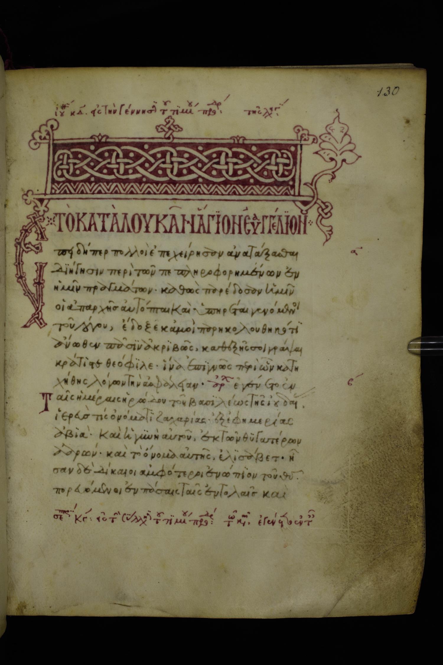 Fourteenth century minuscule of the Gospels on parchment; 250 leaves, 1 column, 20-21 lines per column. Images were taken at the National Library of Greece in Athens.