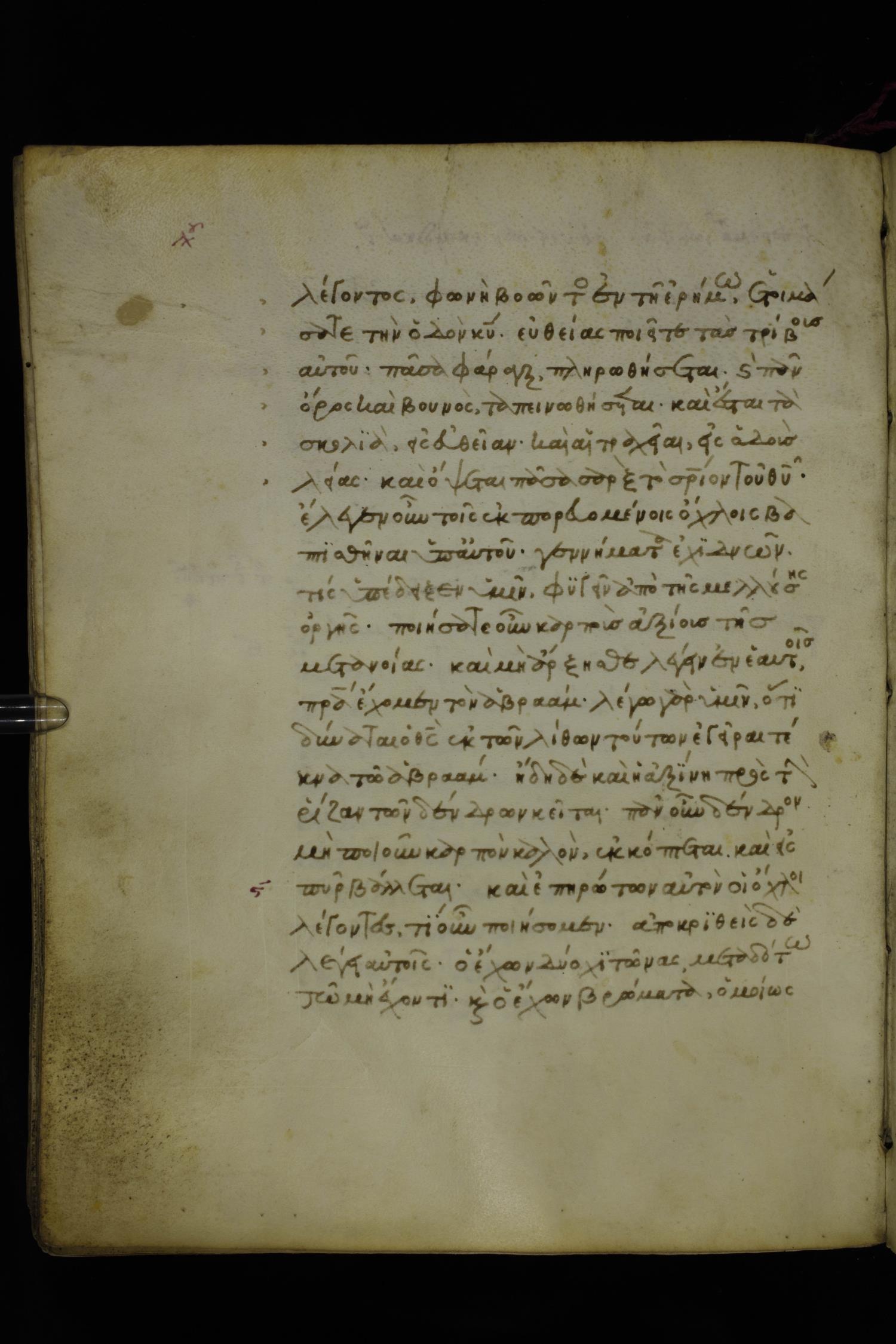 Fourteenth century minuscule of the Gospels on parchment; 250 leaves, 1 column, 20-21 lines per column. Images were taken at the National Library of Greece in Athens.