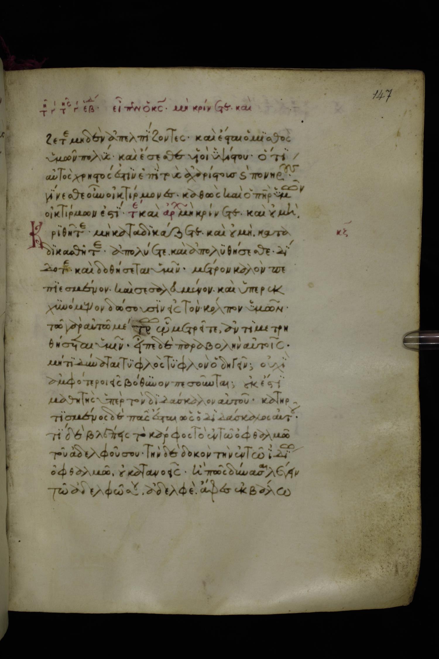Fourteenth century minuscule of the Gospels on parchment; 250 leaves, 1 column, 20-21 lines per column. Images were taken at the National Library of Greece in Athens.