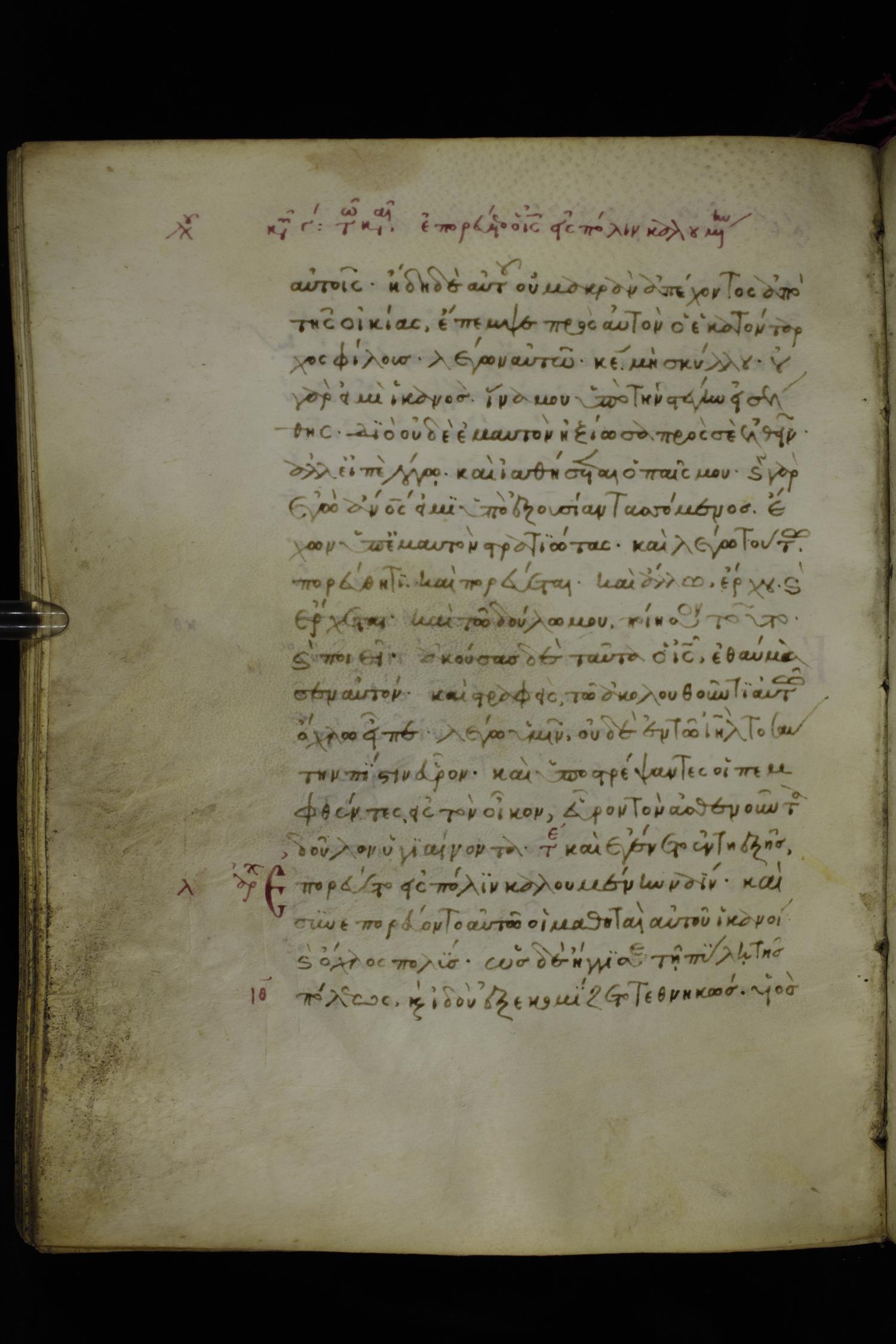 Fourteenth century minuscule of the Gospels on parchment; 250 leaves, 1 column, 20-21 lines per column. Images were taken at the National Library of Greece in Athens.