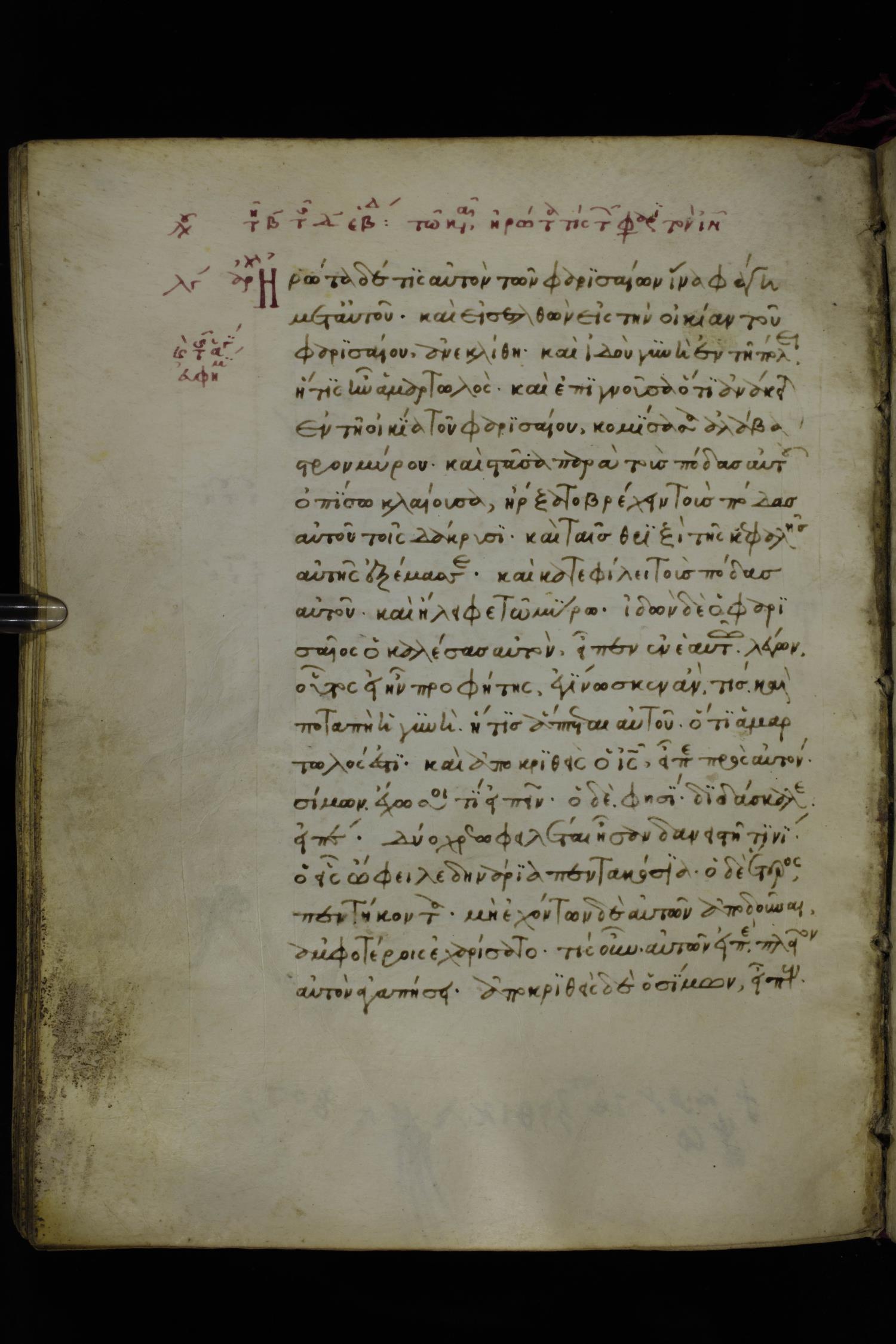 Fourteenth century minuscule of the Gospels on parchment; 250 leaves, 1 column, 20-21 lines per column. Images were taken at the National Library of Greece in Athens.