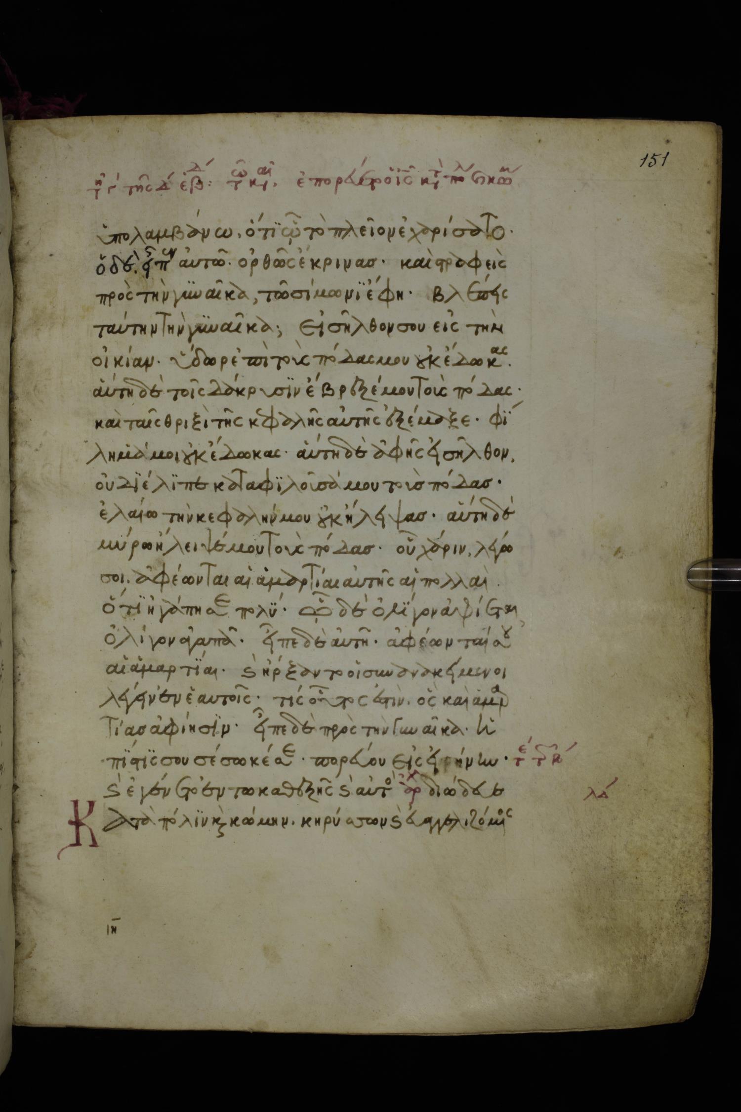 Fourteenth century minuscule of the Gospels on parchment; 250 leaves, 1 column, 20-21 lines per column. Images were taken at the National Library of Greece in Athens.