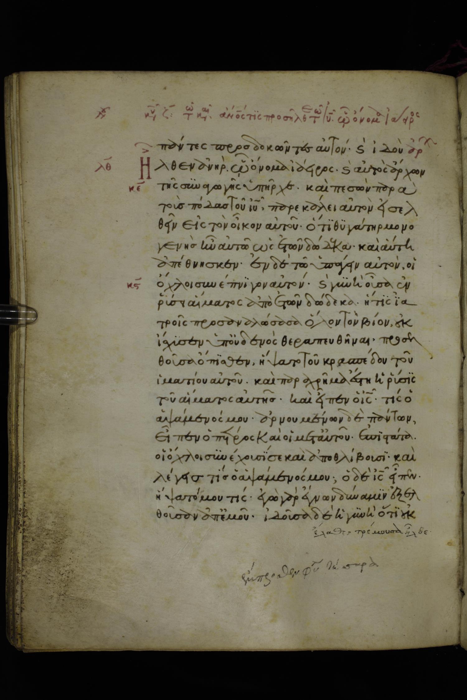 Fourteenth century minuscule of the Gospels on parchment; 250 leaves, 1 column, 20-21 lines per column. Images were taken at the National Library of Greece in Athens.
