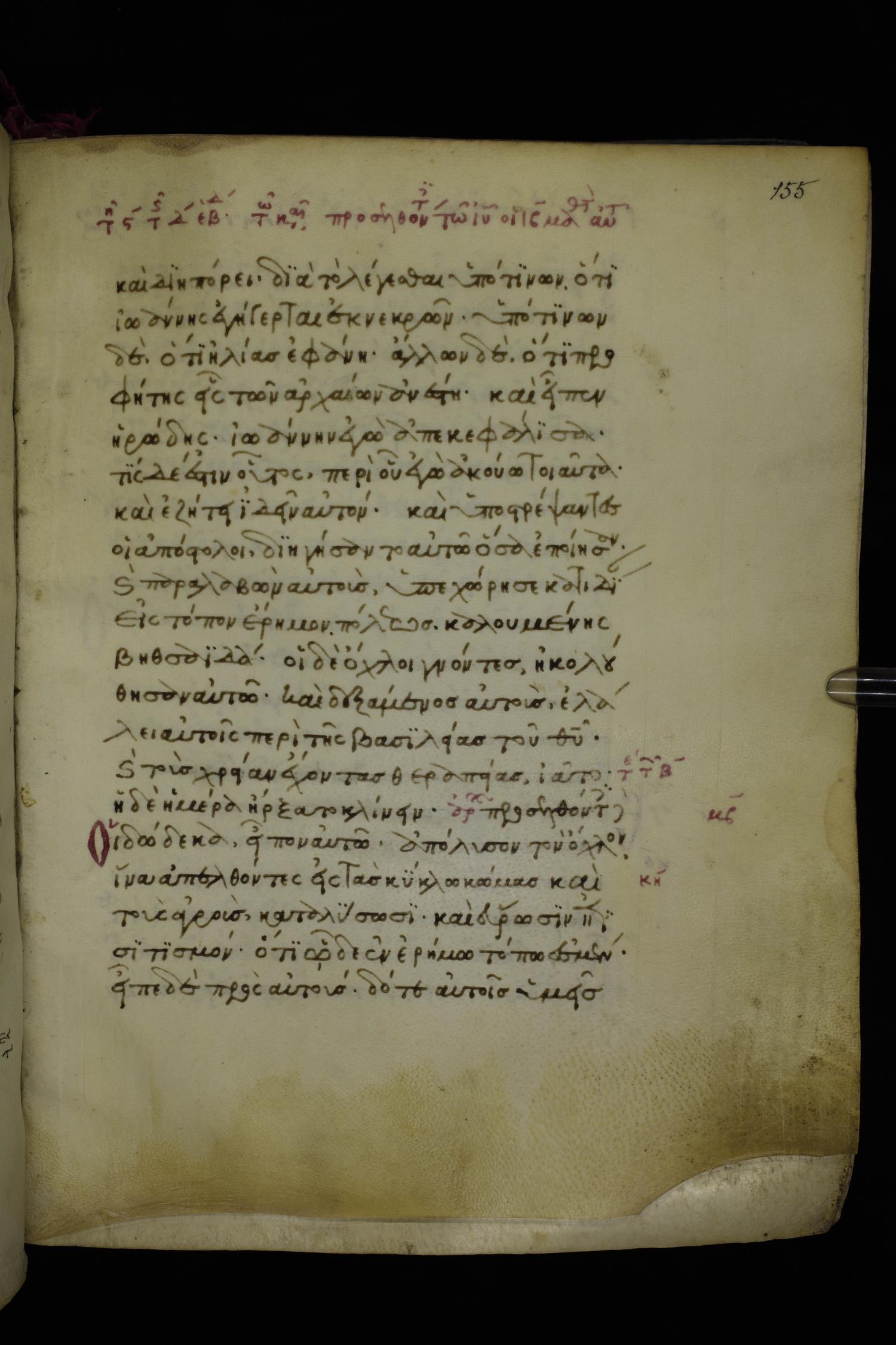 Fourteenth century minuscule of the Gospels on parchment; 250 leaves, 1 column, 20-21 lines per column. Images were taken at the National Library of Greece in Athens.