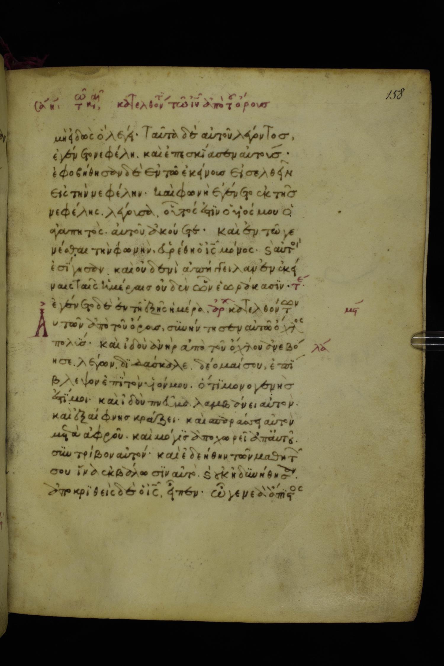 Fourteenth century minuscule of the Gospels on parchment; 250 leaves, 1 column, 20-21 lines per column. Images were taken at the National Library of Greece in Athens.