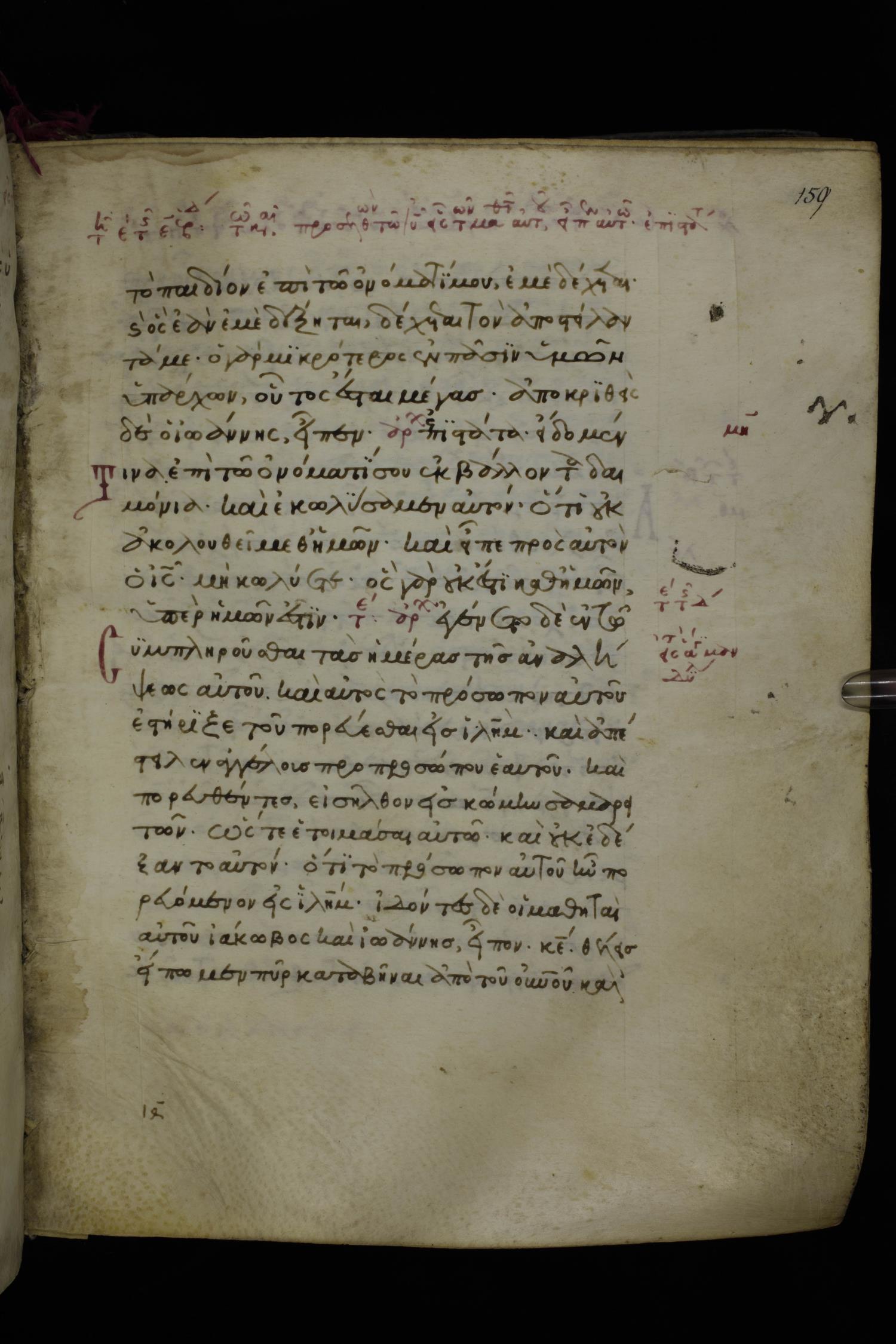 Fourteenth century minuscule of the Gospels on parchment; 250 leaves, 1 column, 20-21 lines per column. Images were taken at the National Library of Greece in Athens.
