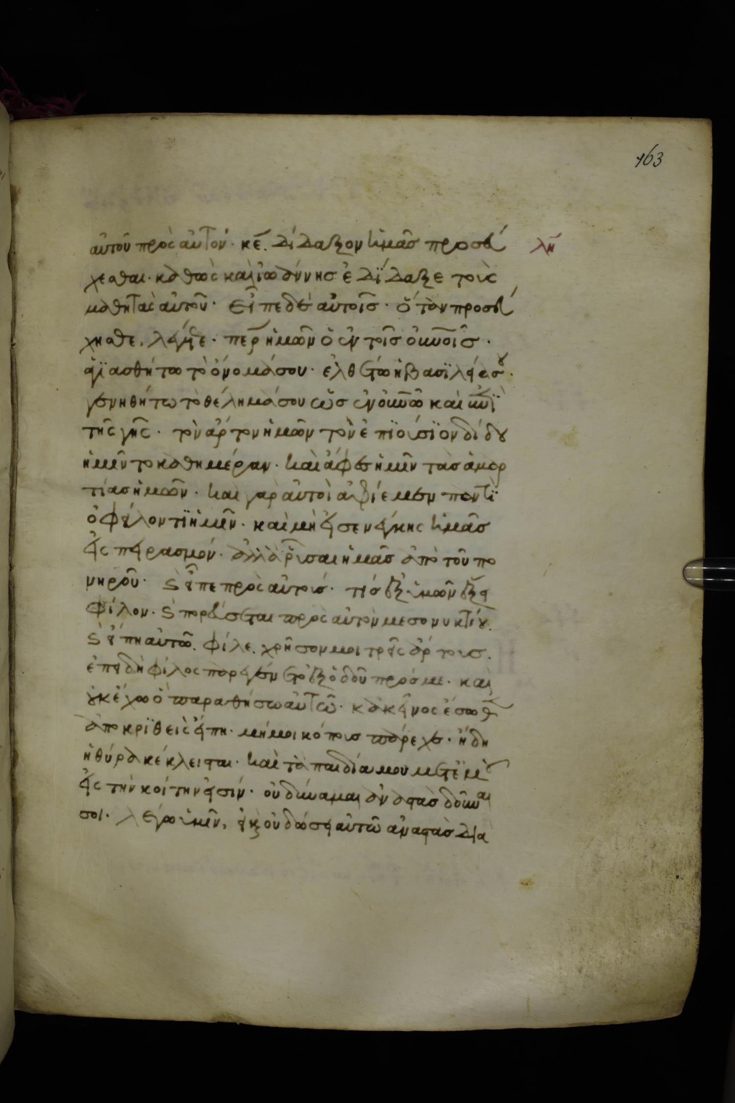 Fourteenth century minuscule of the Gospels on parchment; 250 leaves, 1 column, 20-21 lines per column. Images were taken at the National Library of Greece in Athens.