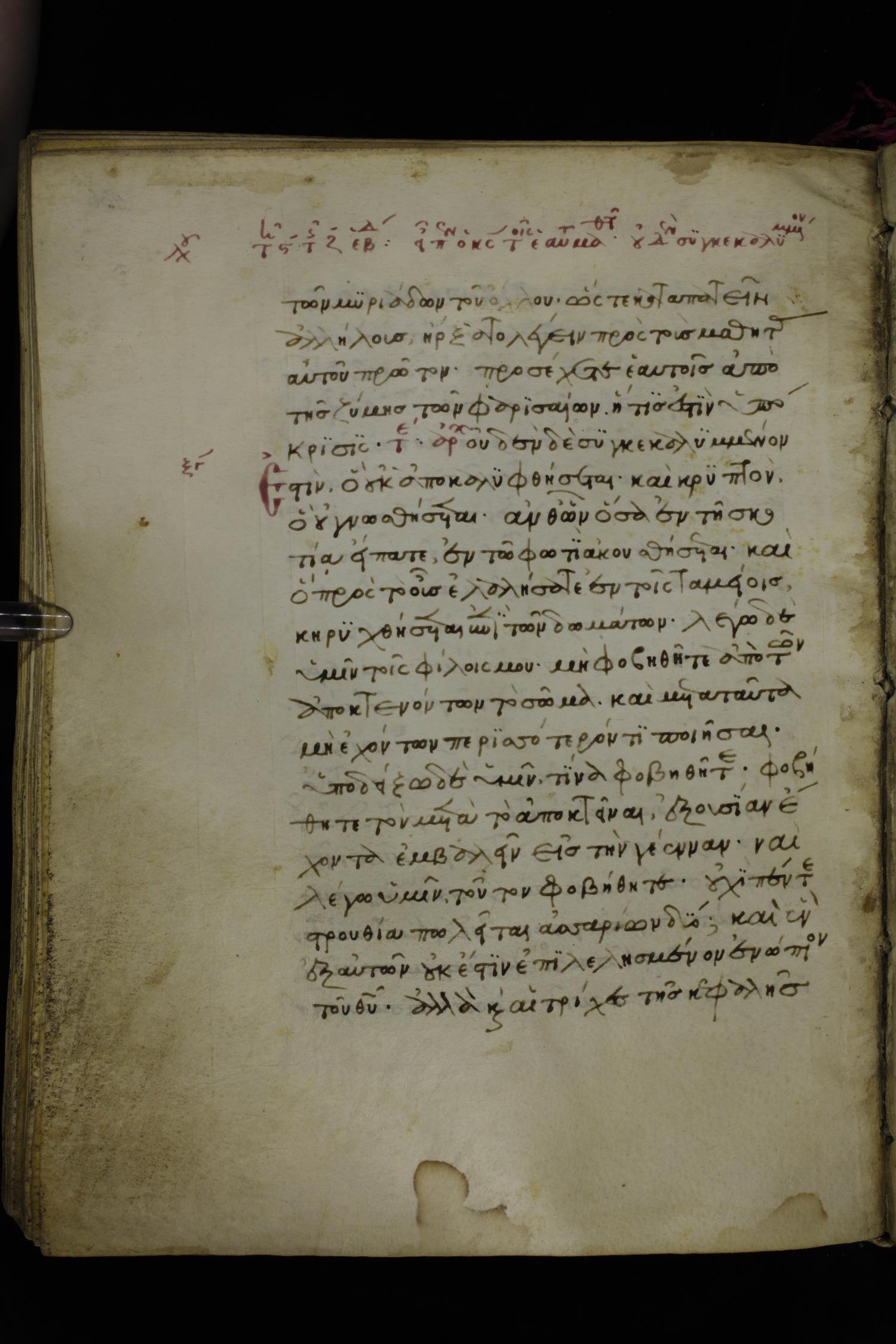 Fourteenth century minuscule of the Gospels on parchment; 250 leaves, 1 column, 20-21 lines per column. Images were taken at the National Library of Greece in Athens.