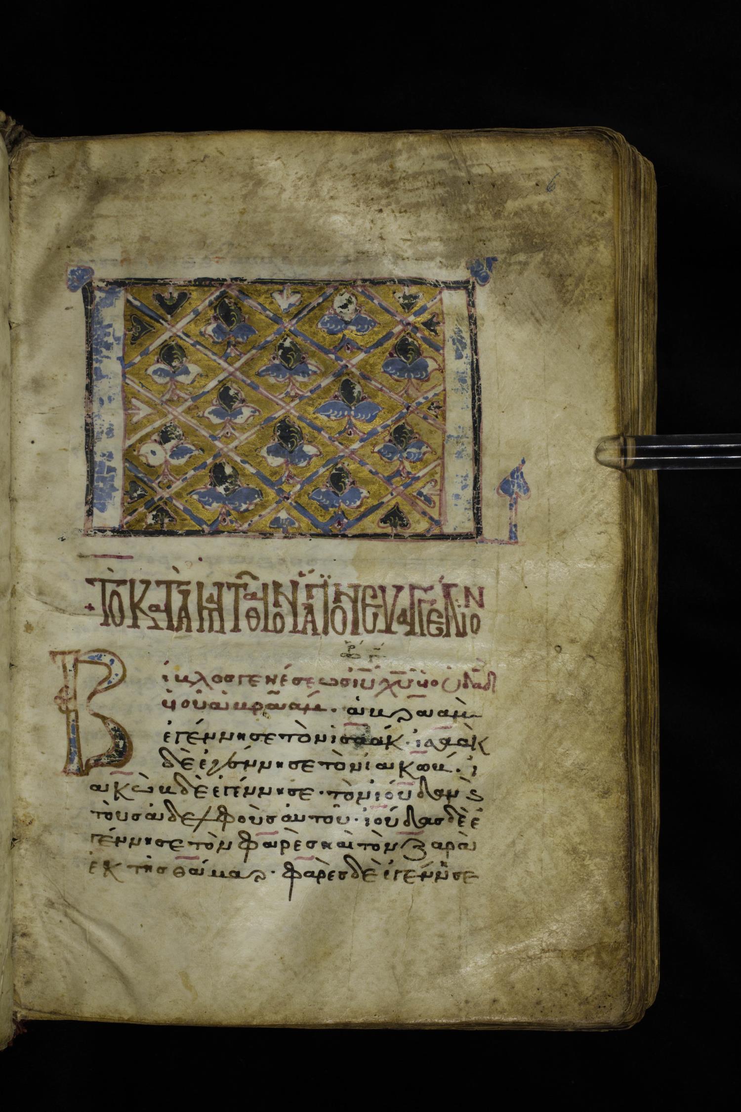 Twelfth or thirteenth century minuscule of the Gospels on parchment; 229 leaves, 1 column, 24-26 lines per column. Images were taken at the National Library of Greece in Athens.