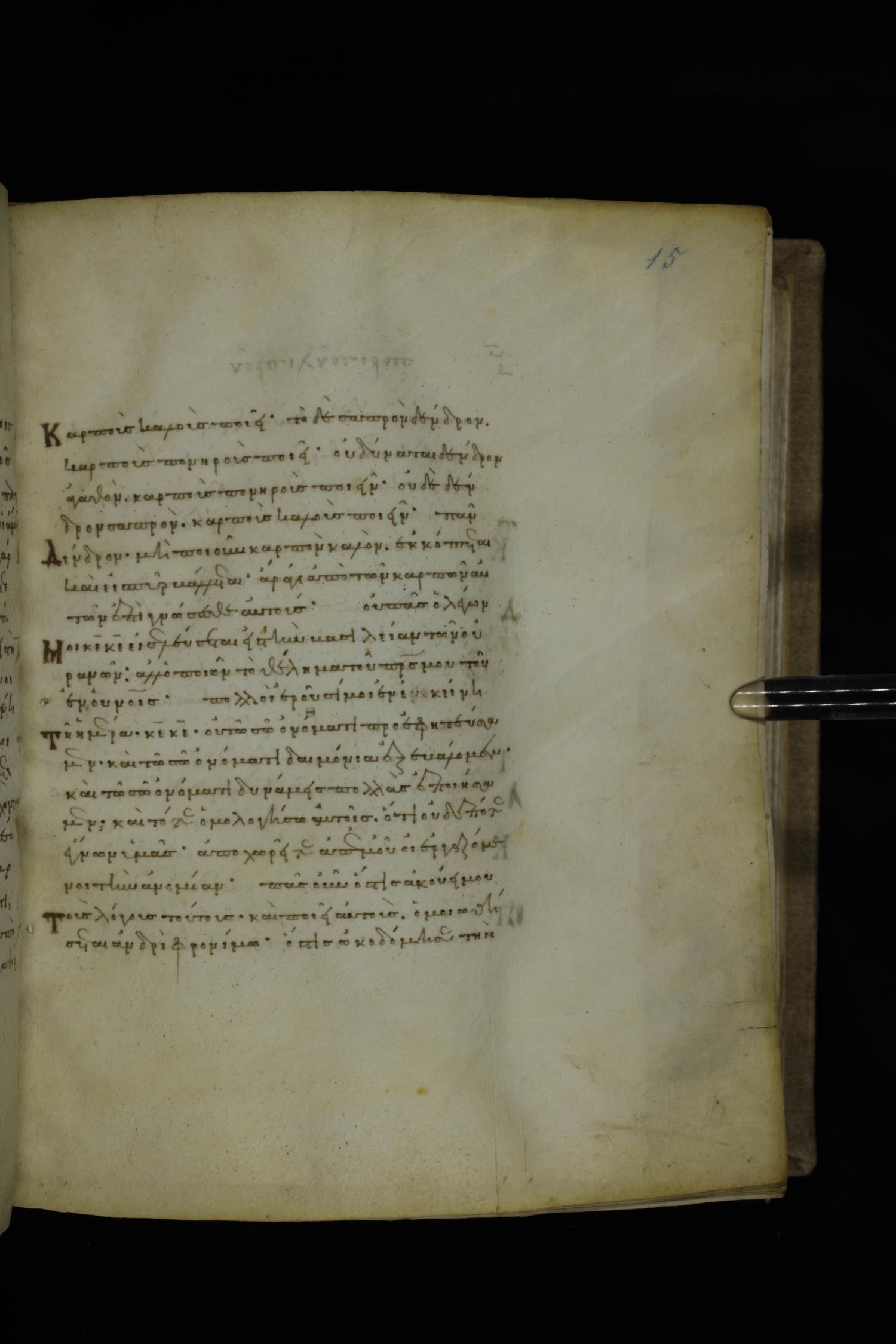 Twelfth century minuscule of the Gospels on parchment; 252 leaves, 1 column, 18 lines per column. Images were taken at the National Library of Greece in Athens.