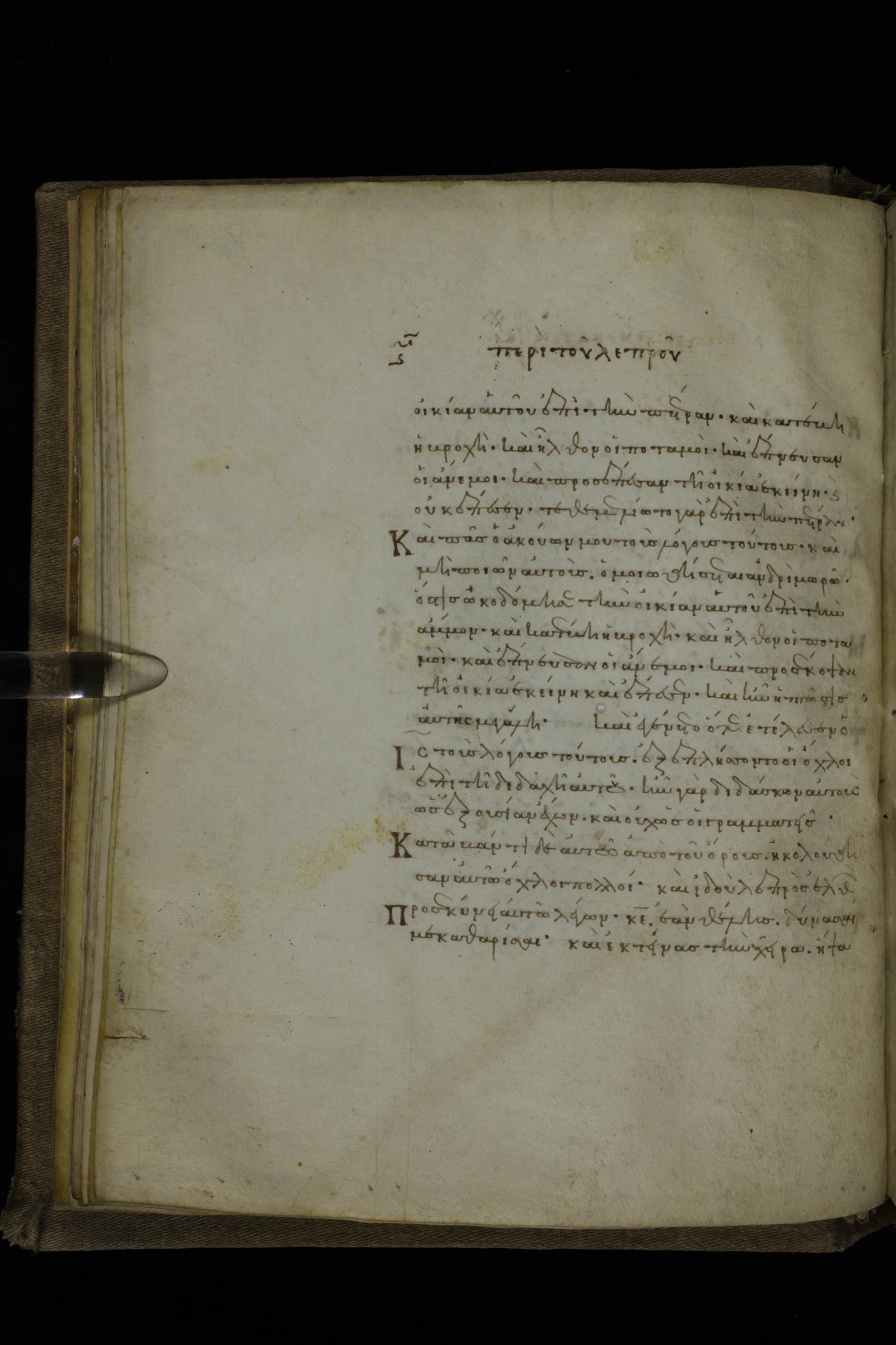Twelfth century minuscule of the Gospels on parchment; 252 leaves, 1 column, 18 lines per column. Images were taken at the National Library of Greece in Athens.