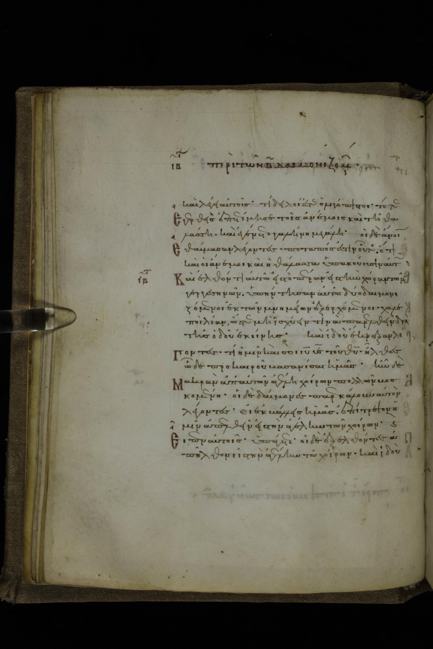 Twelfth century minuscule of the Gospels on parchment; 252 leaves, 1 column, 18 lines per column. Images were taken at the National Library of Greece in Athens.