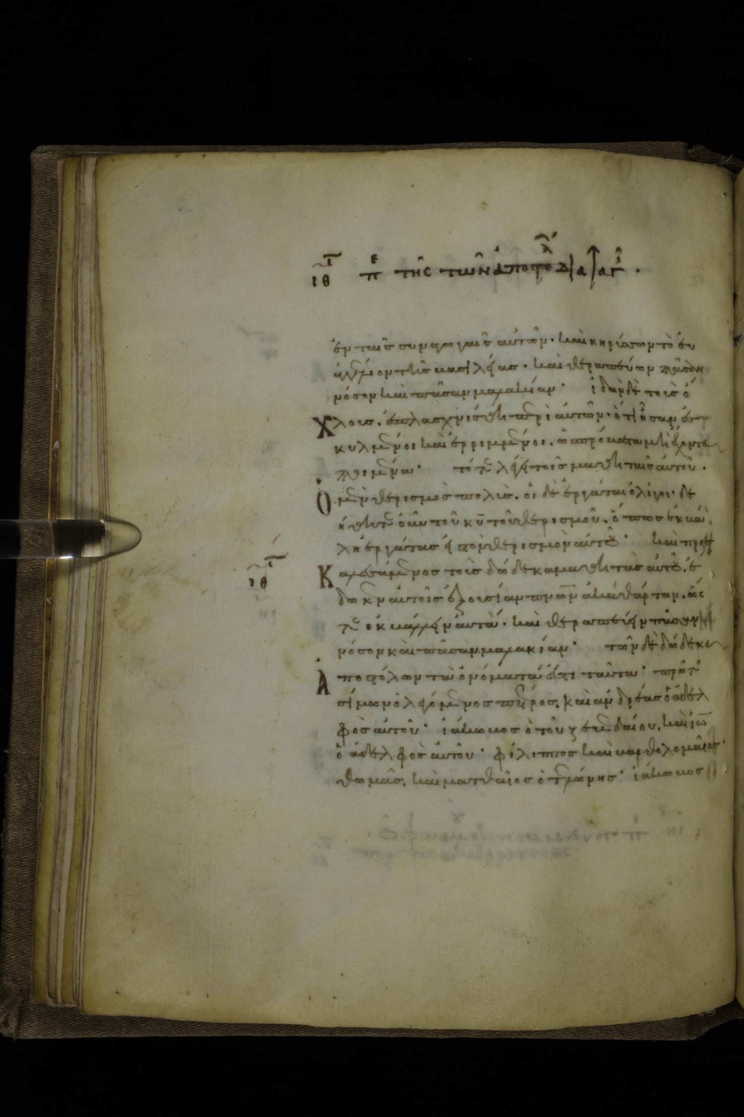 Twelfth century minuscule of the Gospels on parchment; 252 leaves, 1 column, 18 lines per column. Images were taken at the National Library of Greece in Athens.