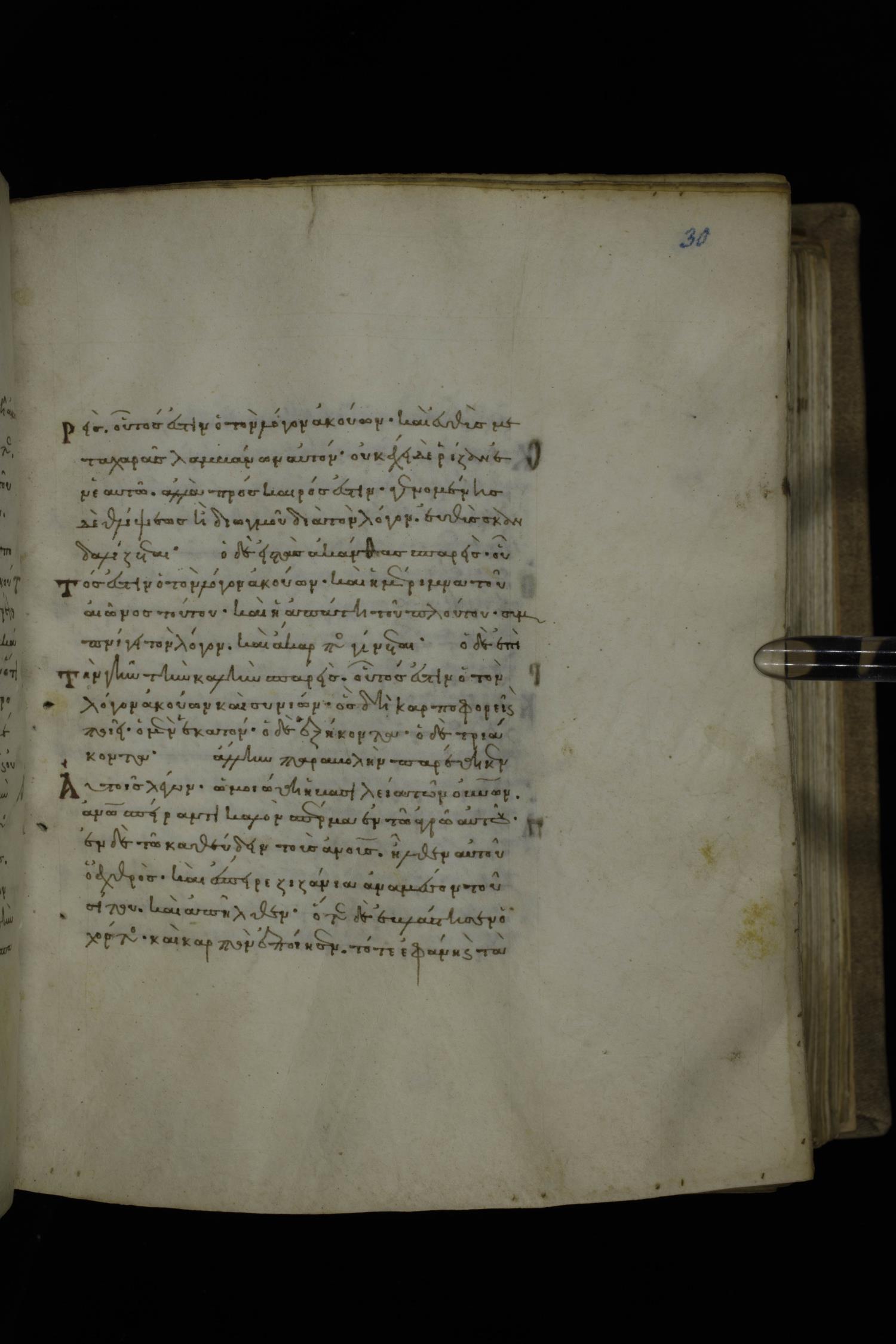 Twelfth century minuscule of the Gospels on parchment; 252 leaves, 1 column, 18 lines per column. Images were taken at the National Library of Greece in Athens.