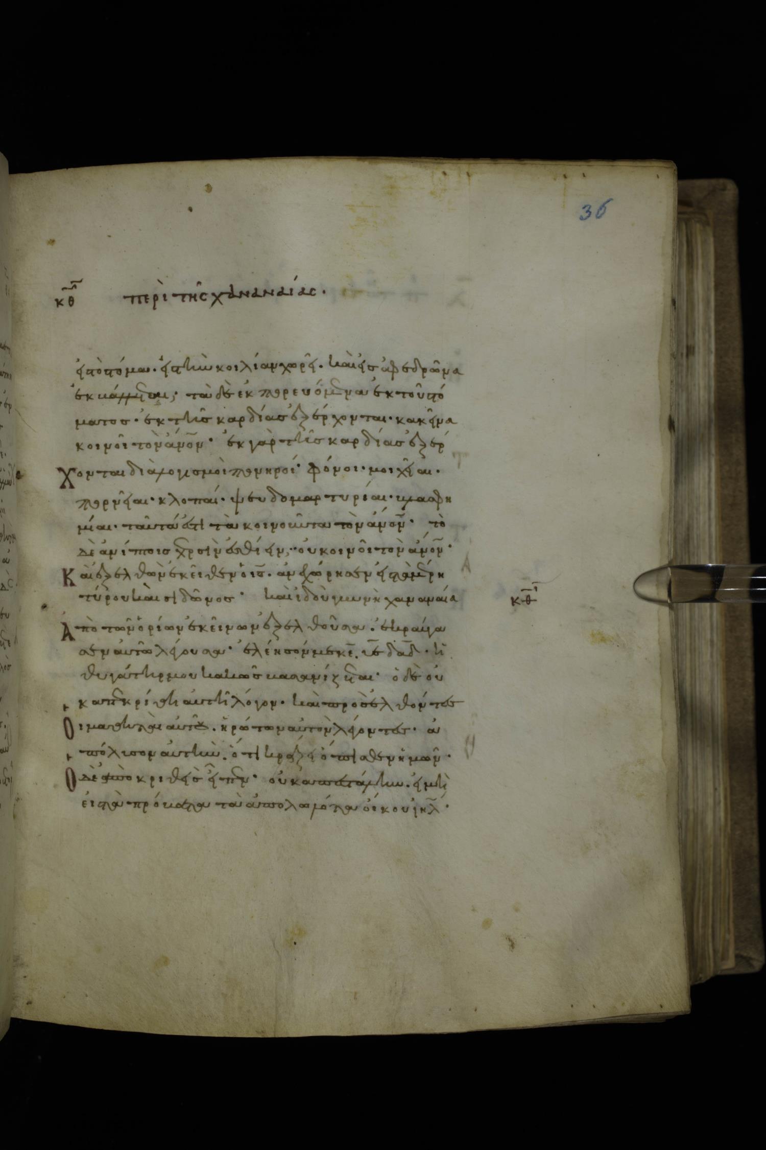 Twelfth century minuscule of the Gospels on parchment; 252 leaves, 1 column, 18 lines per column. Images were taken at the National Library of Greece in Athens.