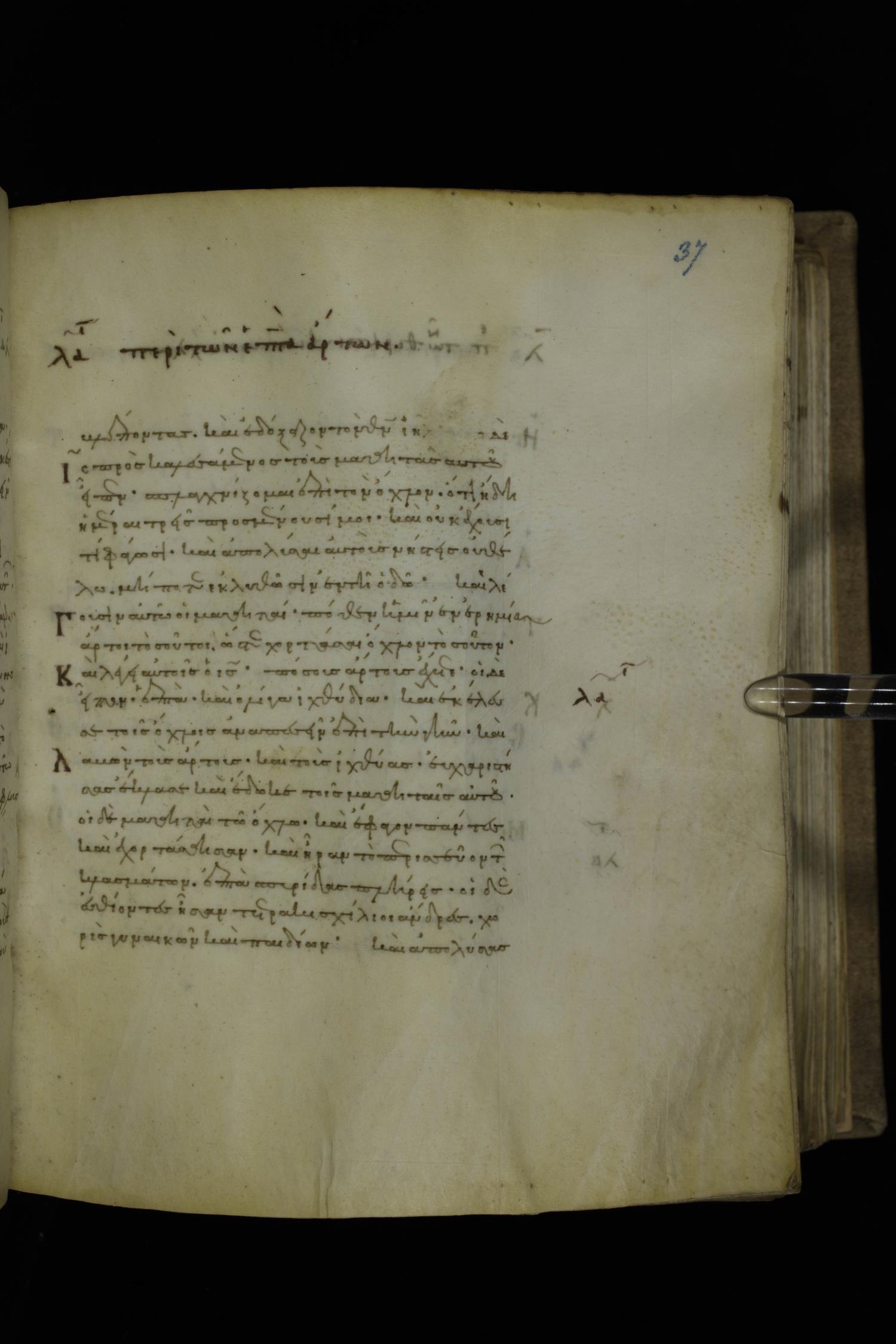 Twelfth century minuscule of the Gospels on parchment; 252 leaves, 1 column, 18 lines per column. Images were taken at the National Library of Greece in Athens.