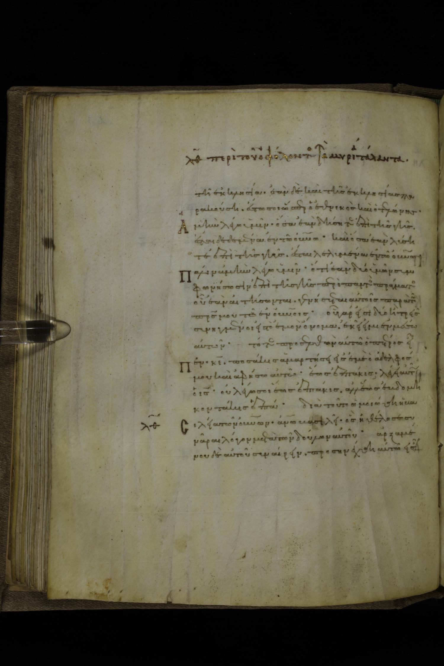 Twelfth century minuscule of the Gospels on parchment; 252 leaves, 1 column, 18 lines per column. Images were taken at the National Library of Greece in Athens.