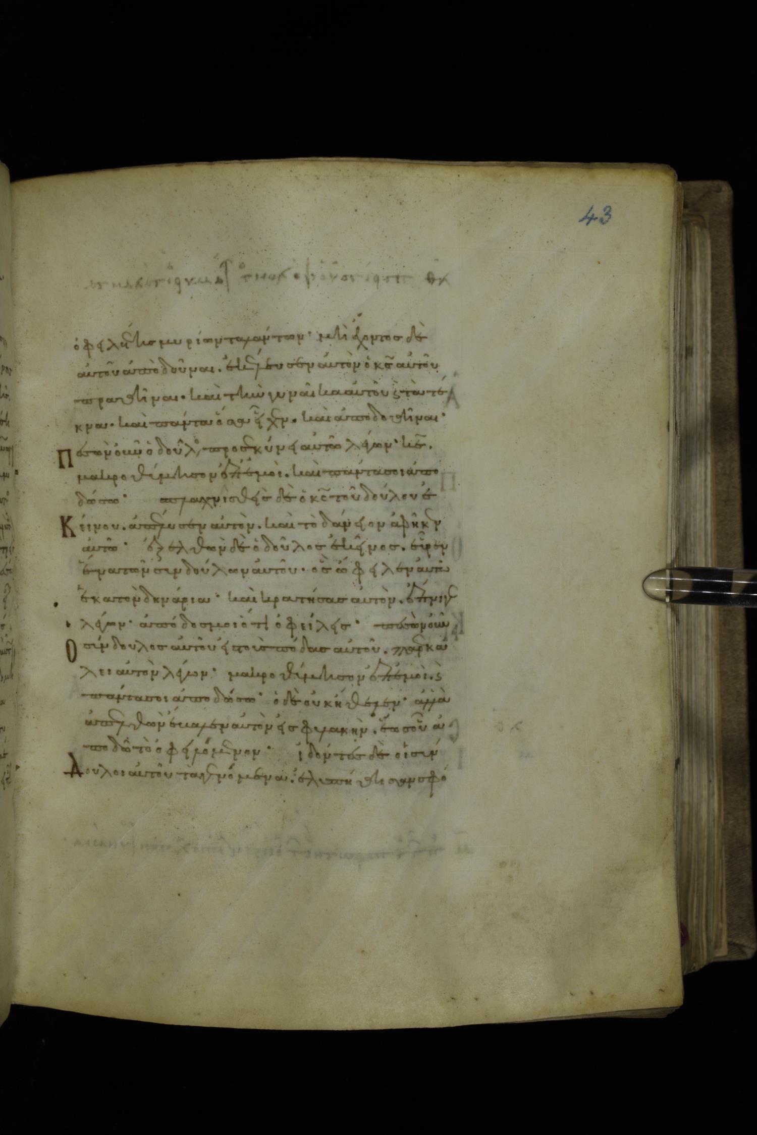 Twelfth century minuscule of the Gospels on parchment; 252 leaves, 1 column, 18 lines per column. Images were taken at the National Library of Greece in Athens.