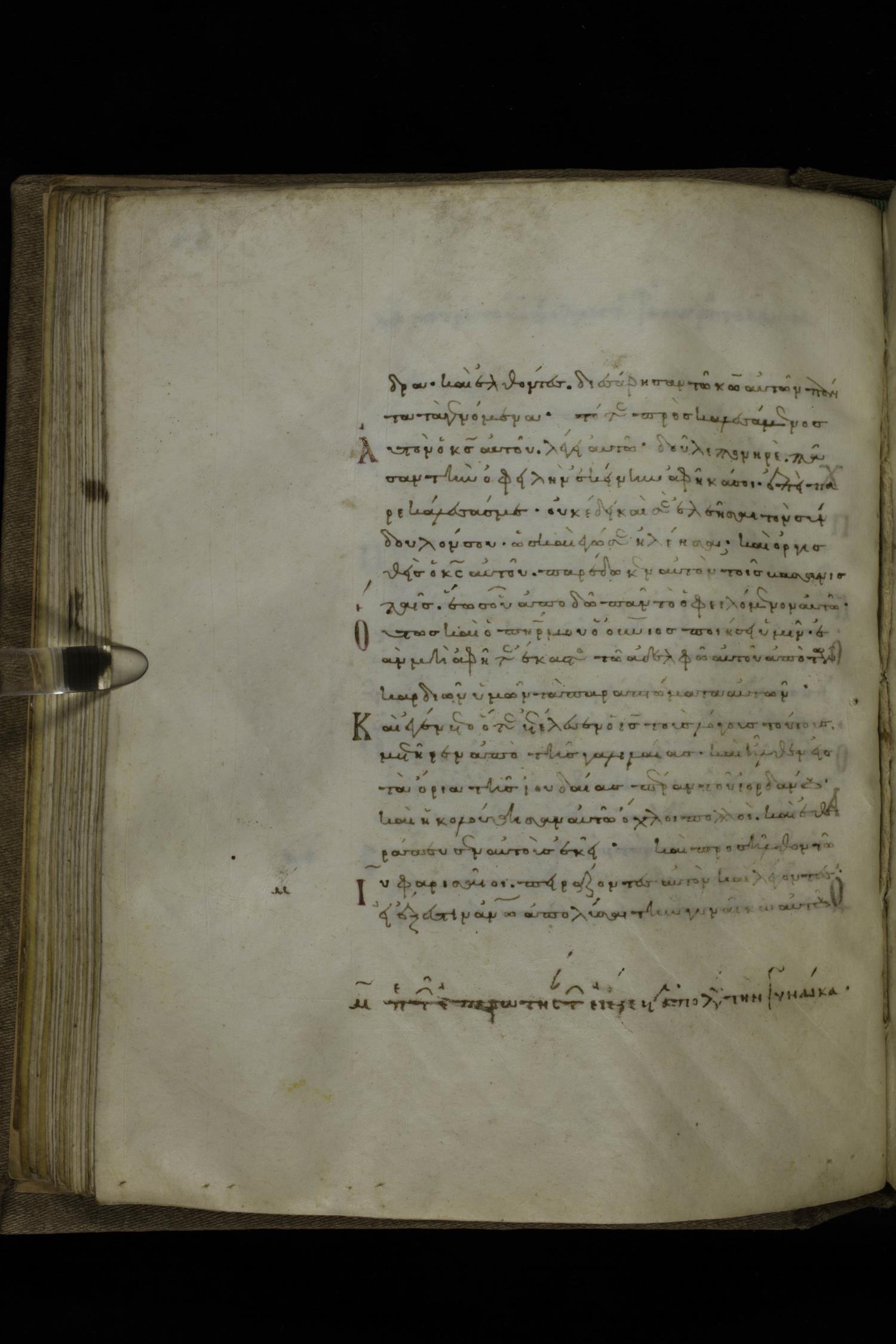 Twelfth century minuscule of the Gospels on parchment; 252 leaves, 1 column, 18 lines per column. Images were taken at the National Library of Greece in Athens.