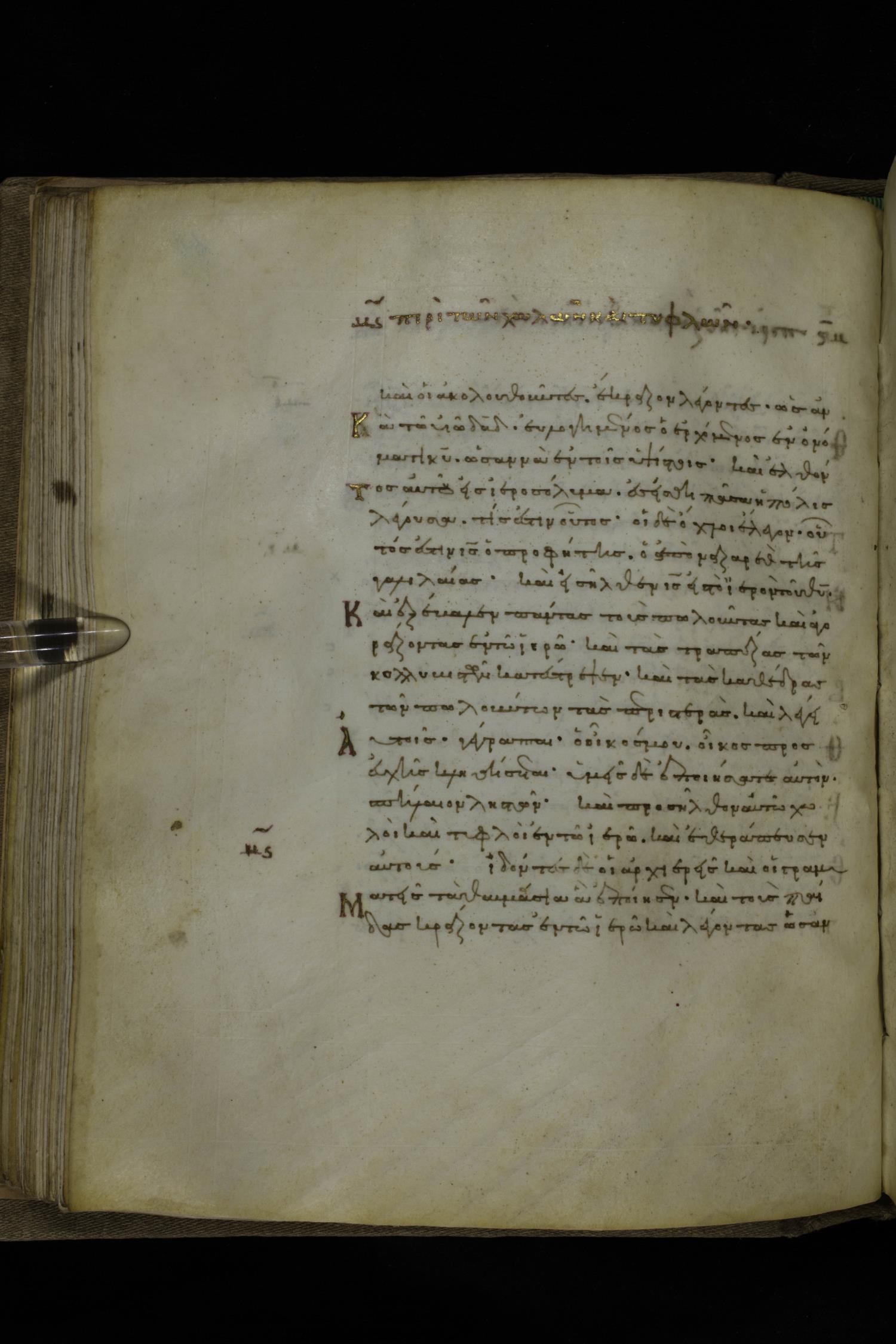 Twelfth century minuscule of the Gospels on parchment; 252 leaves, 1 column, 18 lines per column. Images were taken at the National Library of Greece in Athens.