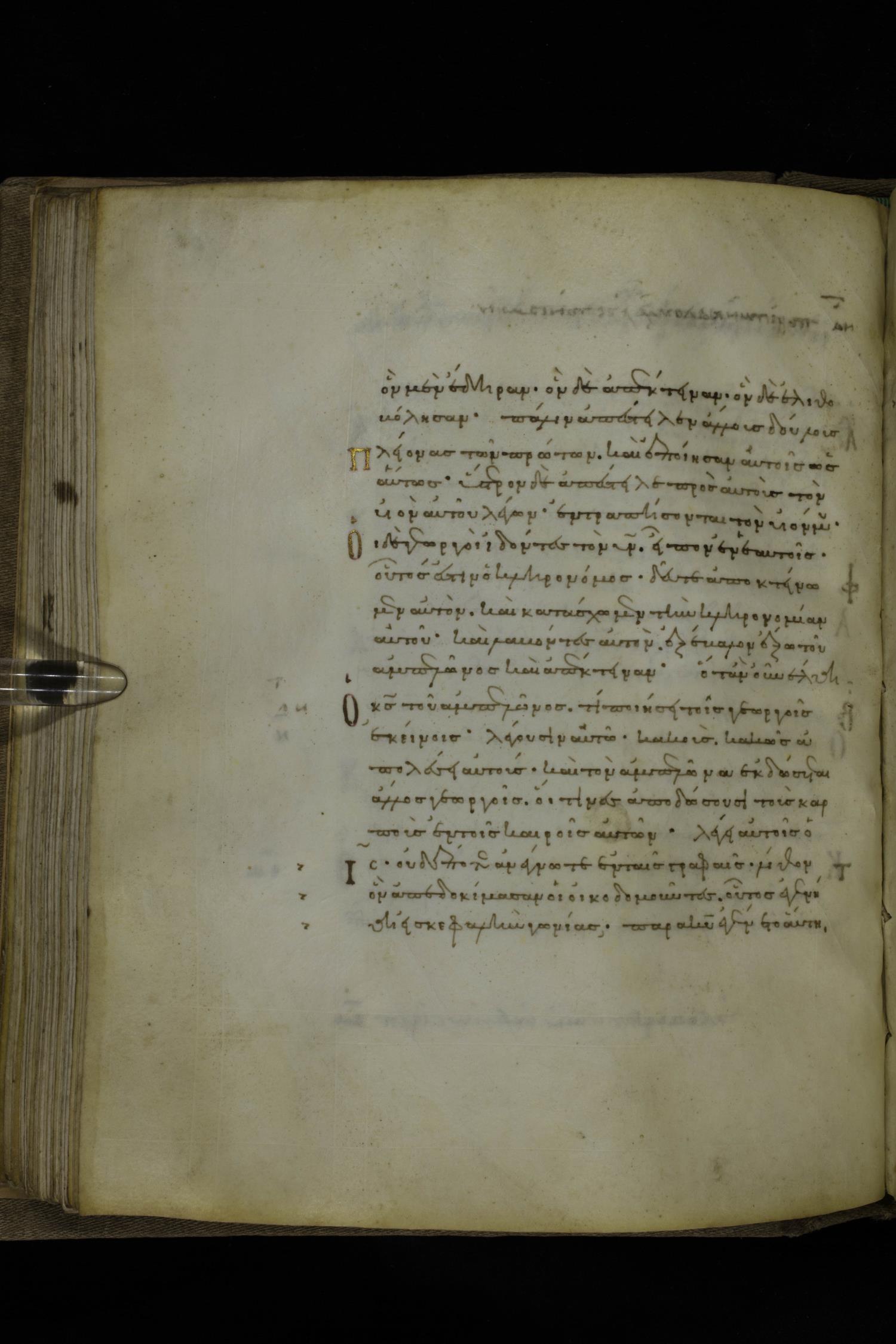 Twelfth century minuscule of the Gospels on parchment; 252 leaves, 1 column, 18 lines per column. Images were taken at the National Library of Greece in Athens.