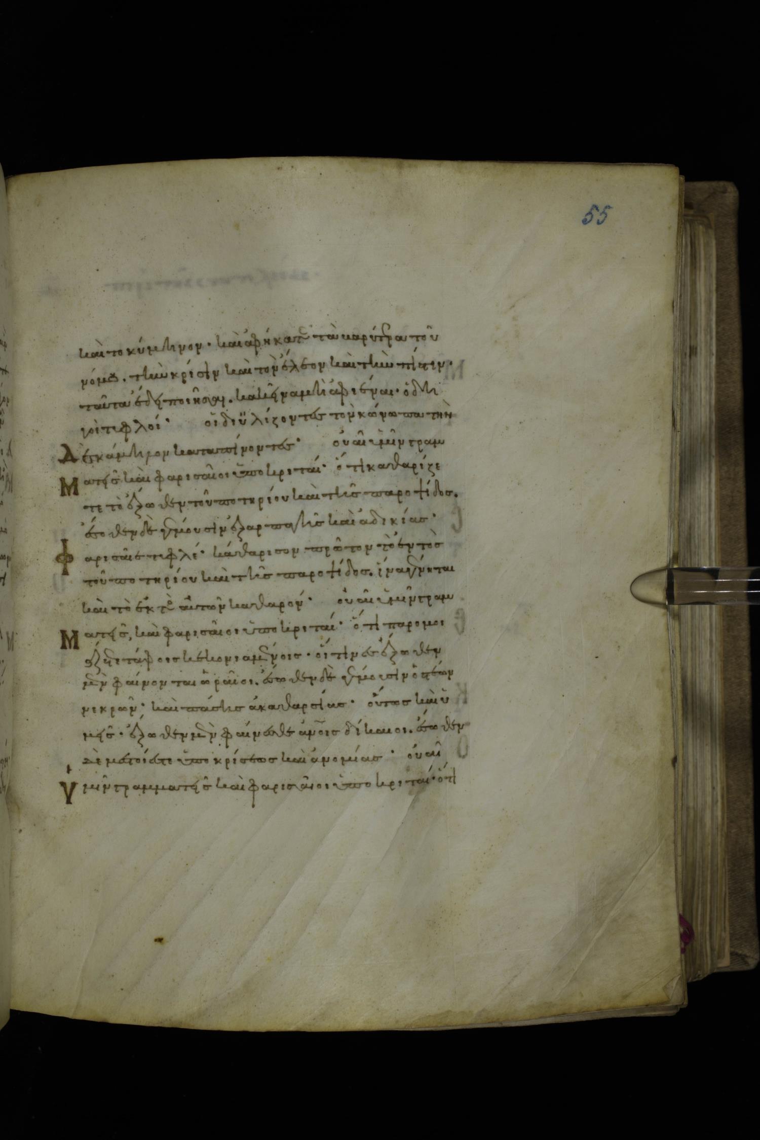Twelfth century minuscule of the Gospels on parchment; 252 leaves, 1 column, 18 lines per column. Images were taken at the National Library of Greece in Athens.