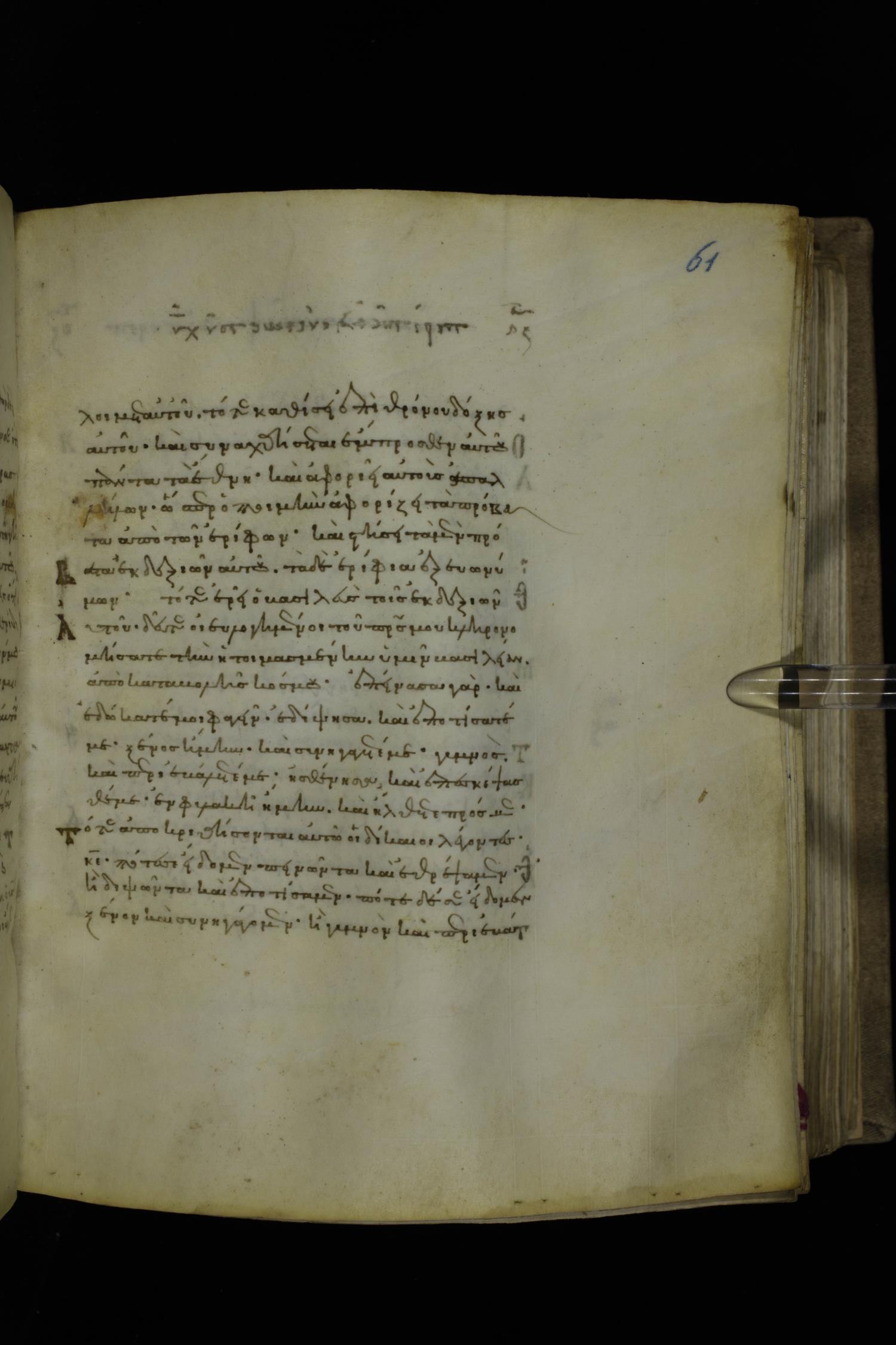 Twelfth century minuscule of the Gospels on parchment; 252 leaves, 1 column, 18 lines per column. Images were taken at the National Library of Greece in Athens.