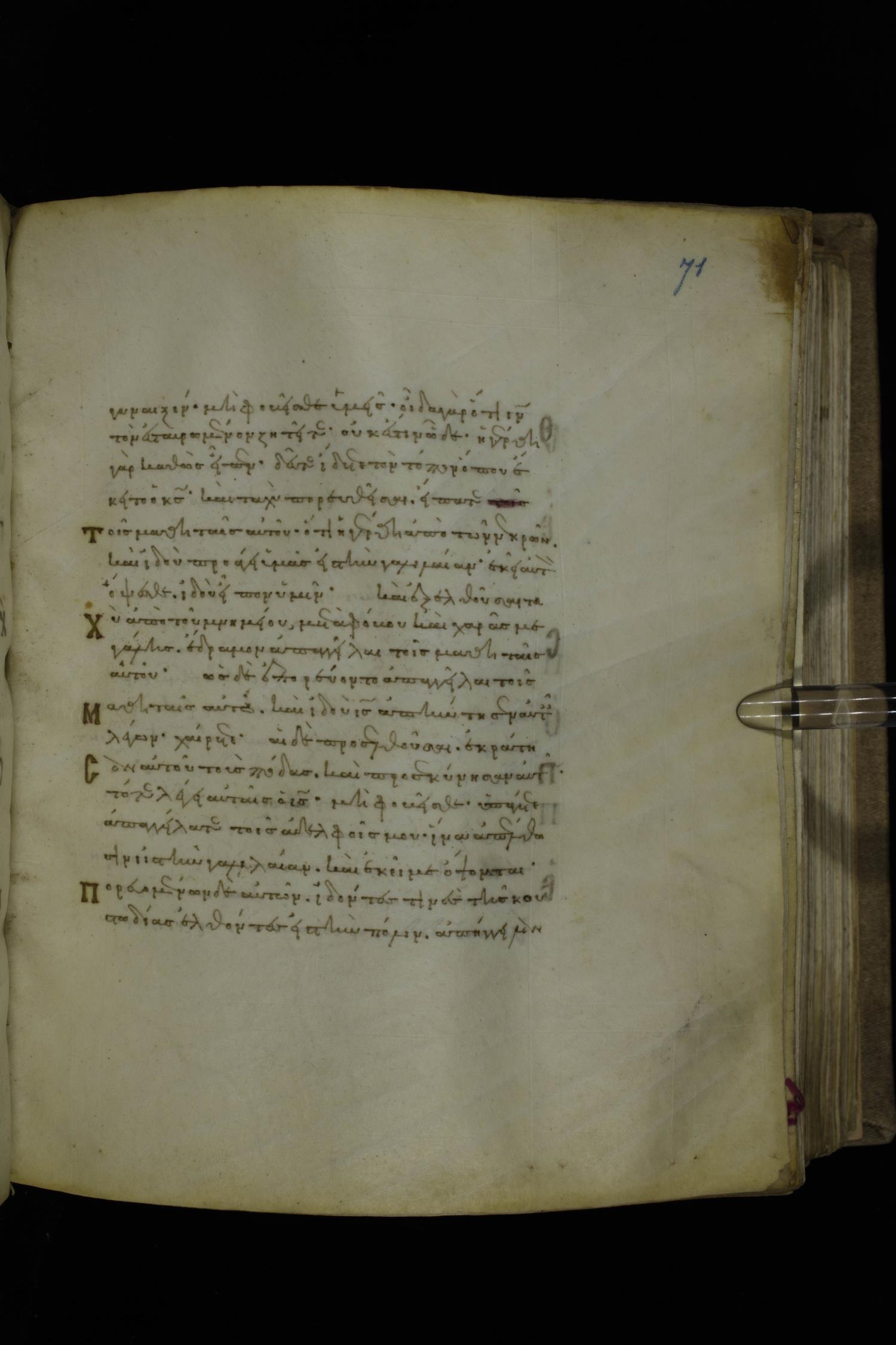 Twelfth century minuscule of the Gospels on parchment; 252 leaves, 1 column, 18 lines per column. Images were taken at the National Library of Greece in Athens.