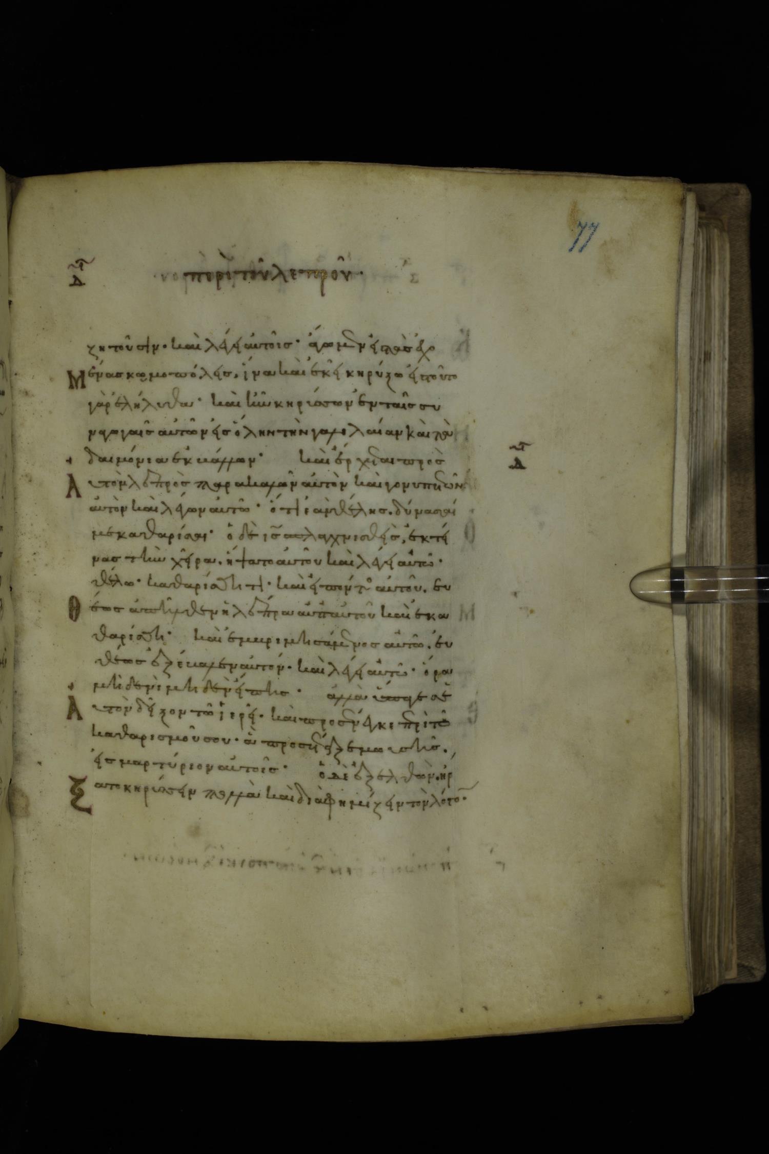Twelfth century minuscule of the Gospels on parchment; 252 leaves, 1 column, 18 lines per column. Images were taken at the National Library of Greece in Athens.