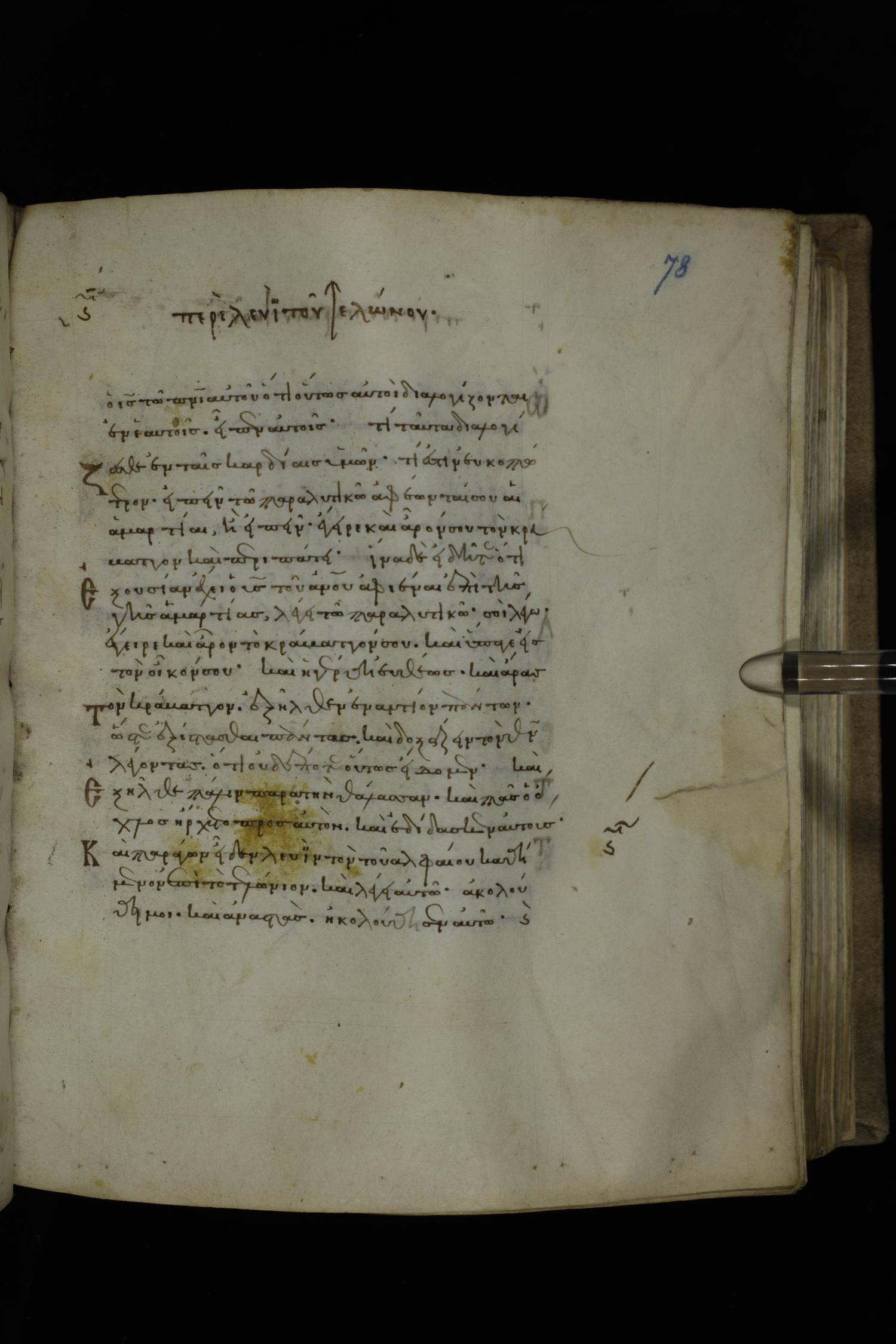 Twelfth century minuscule of the Gospels on parchment; 252 leaves, 1 column, 18 lines per column. Images were taken at the National Library of Greece in Athens.