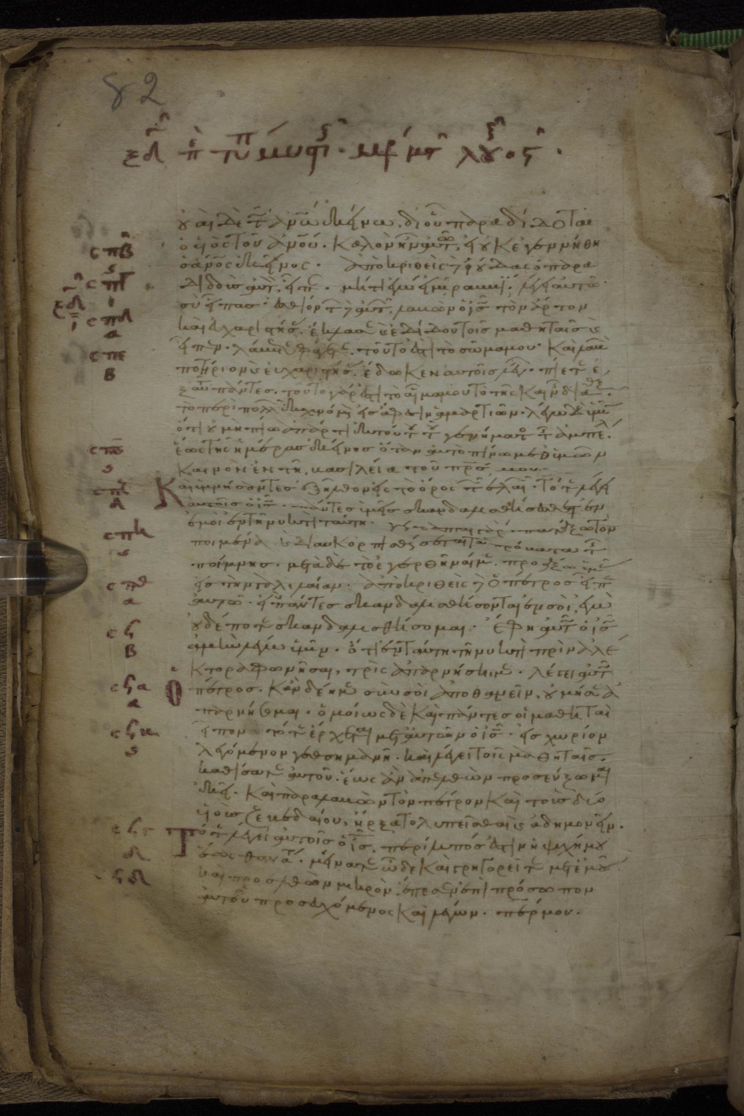 Eleventh century minuscule of the Gospels, the Apostolos, and Paul on parchment; 318 leaves, 1 column, 34 lines per column. Images were taken at the National Library of Greece in Athens.