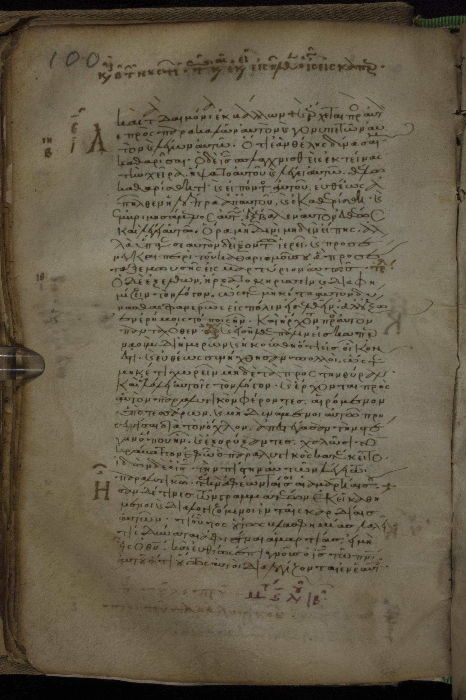 Eleventh century minuscule of the Gospels, the Apostolos, and Paul on parchment; 318 leaves, 1 column, 34 lines per column. Images were taken at the National Library of Greece in Athens.