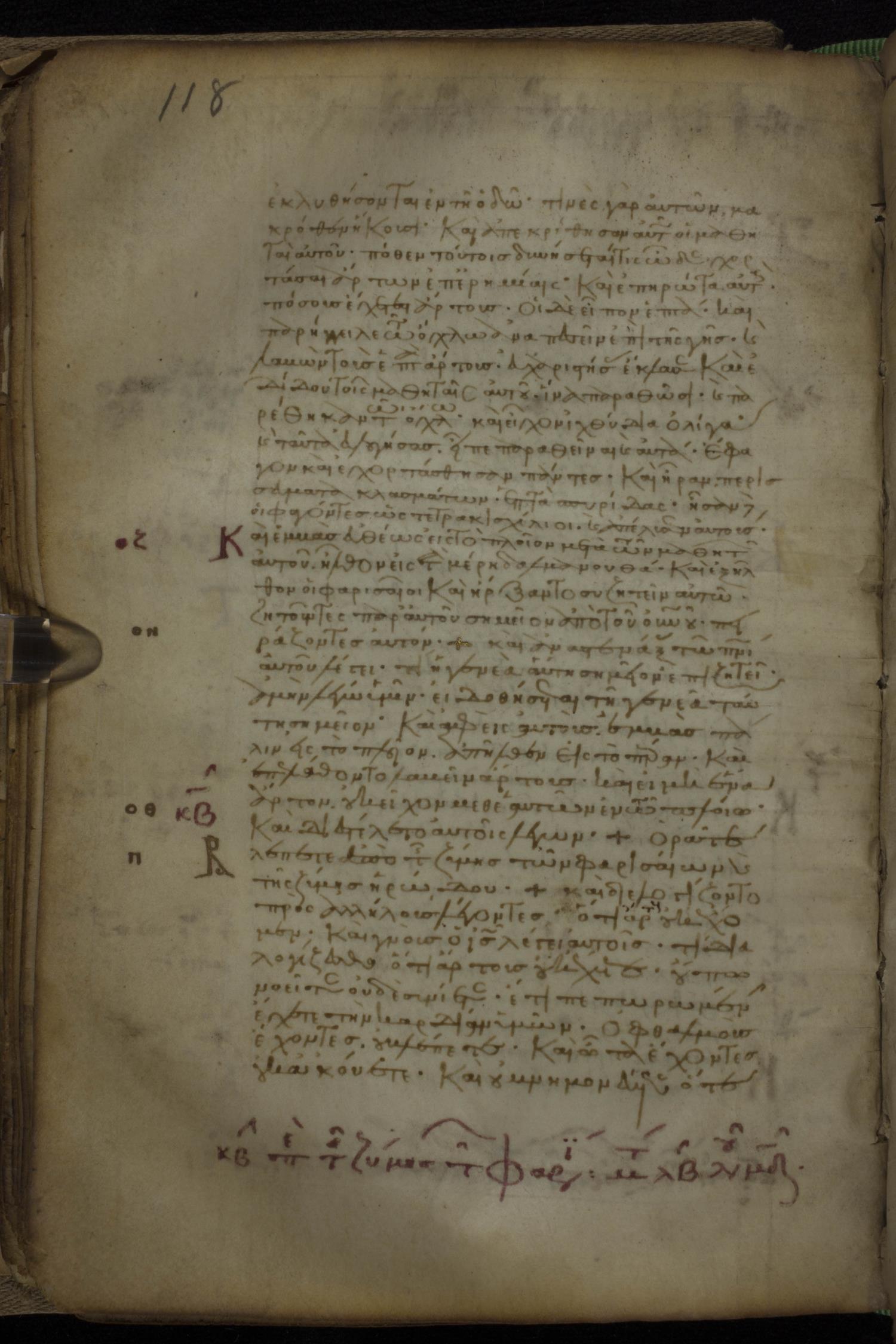 Eleventh century minuscule of the Gospels, the Apostolos, and Paul on parchment; 318 leaves, 1 column, 34 lines per column. Images were taken at the National Library of Greece in Athens.