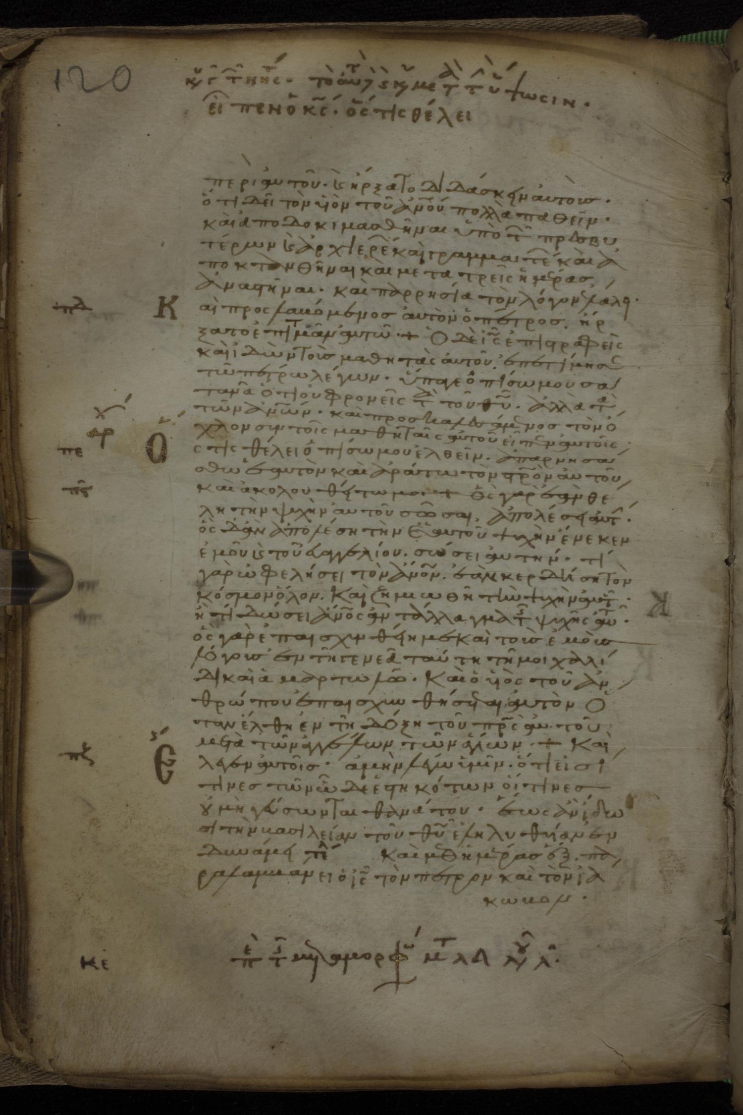 Eleventh century minuscule of the Gospels, the Apostolos, and Paul on parchment; 318 leaves, 1 column, 34 lines per column. Images were taken at the National Library of Greece in Athens.