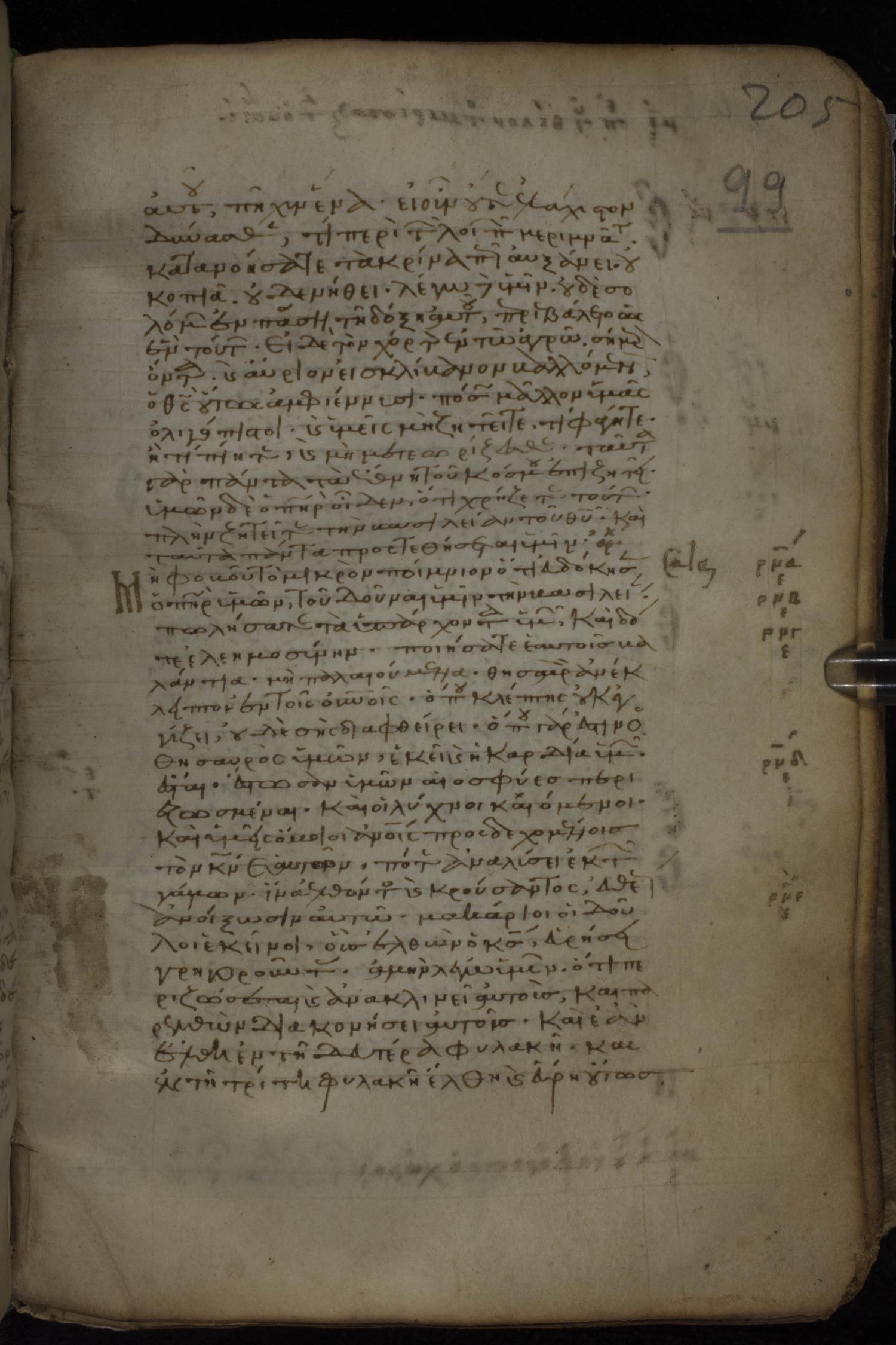Eleventh century minuscule of the Gospels, the Apostolos, and Paul on parchment; 318 leaves, 1 column, 34 lines per column. Images were taken at the National Library of Greece in Athens.